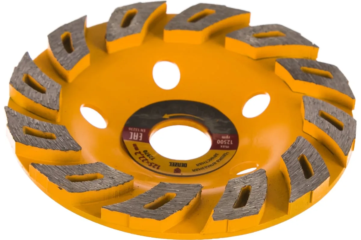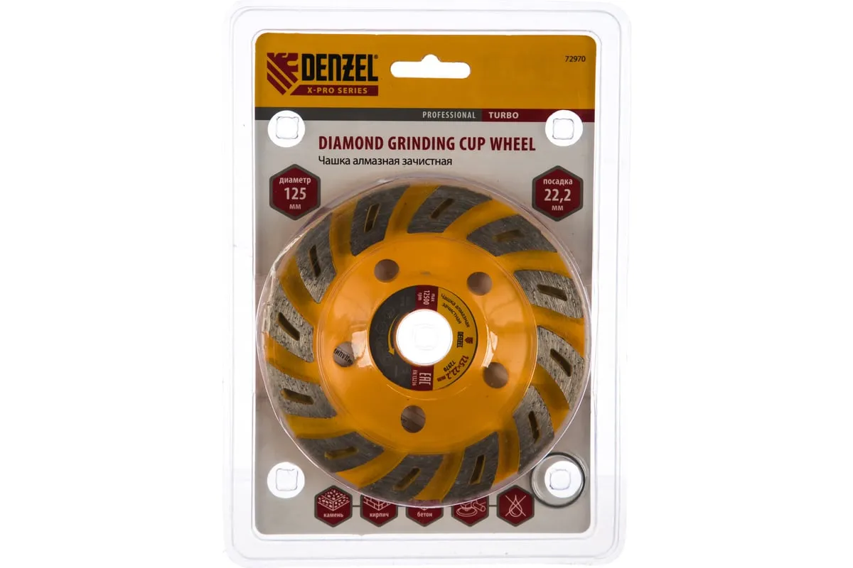 Алмазная зачистная чашка Denzel Турбо 72970 диаметром 125 мм имеет посадочный диаметр 22,2 мм и предназначена для установки на вал углошлифовальной машины. Используется для чистового шлифования бетона, камня, кирпича, гранита, мрамора. Эффективно удаляет мелкие неровности, придавая поверхности гладкость. Оптимально подобранная связка в сочетании с высокой концентрацией алмазов обеспечивает максимальную производительность чашки. Чашка рекомендована для профессионального использования.