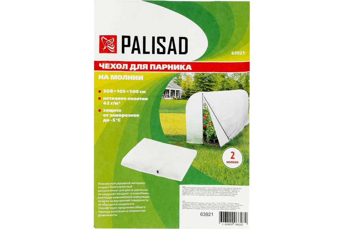 Чехол на молнии для парника PALISAD 500 х 110 см 63921 обеспечивает ускоренное прогревание грунта и хороший урожай. Выполнен из нетканого материала (СУФ 42), который обладает водо- и воздухопроницаемостью. В чехле предусмотрена дверь на молнии.
