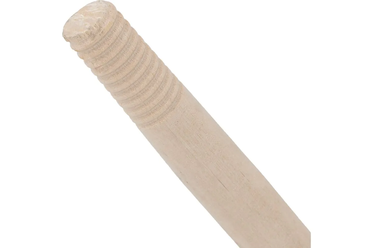 Деревянный черенок с затыловкой изготовлен из древесины лиственных пород высшего сорта.Двойное шлифование делает поверхность черенка гладкой.Благодаря сушке в термокамере исключается возможность возникновения плесени.Окончание черенка выполнено в виде резьбового наконечника для насаживания инструмента с резьбовой тулейкой.Диаметр адаптирован под посадочное место метел и щеток.