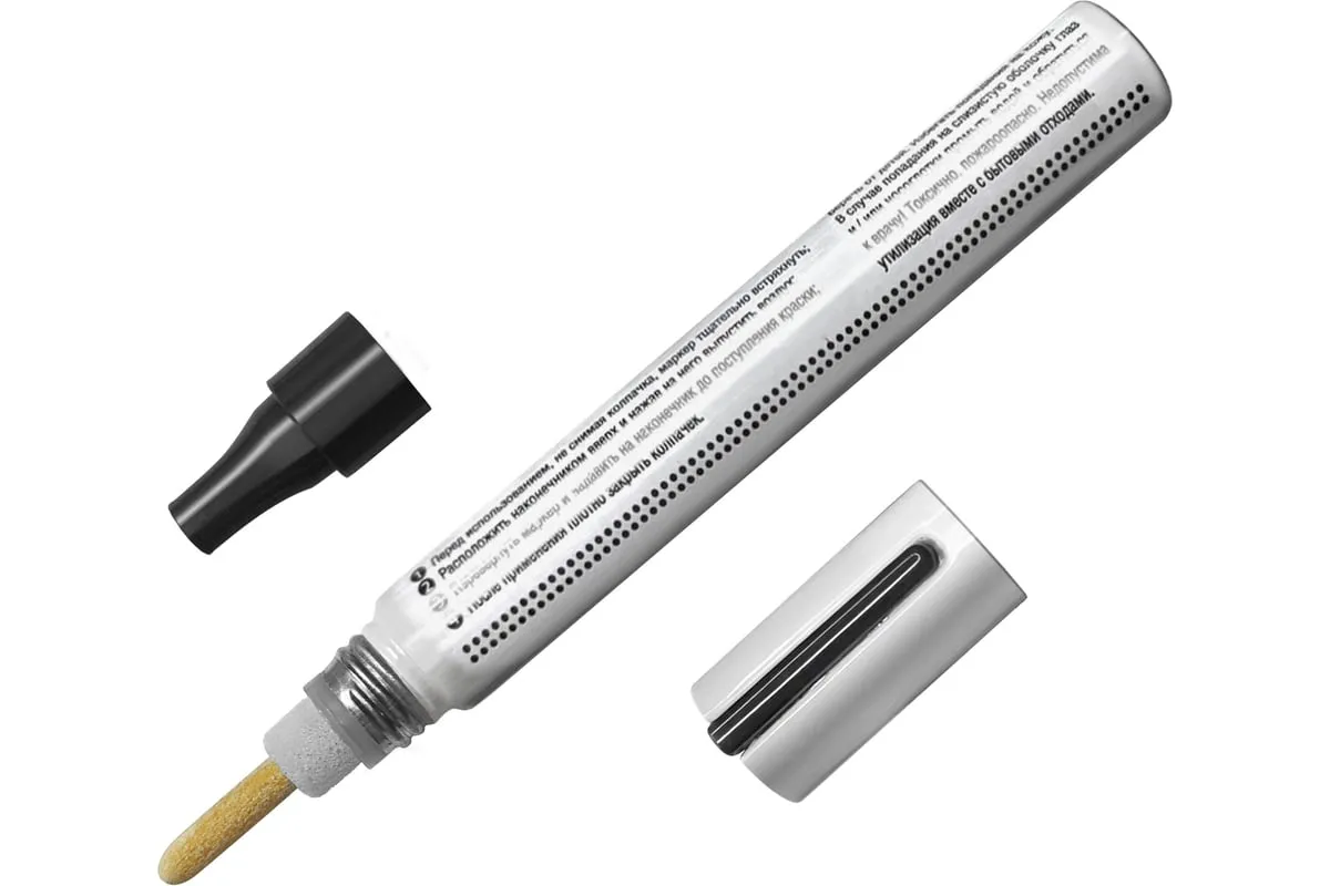 Черный строительный маркер-краска LEKON 011804 служит для разметки отделочных материалов, маркировки товаров в торговом зале, маскировки дефектов мебели и бытовой техники. Красящий состав быстро высыхает на поверхности и отличается устойчивостью к выцветанию.