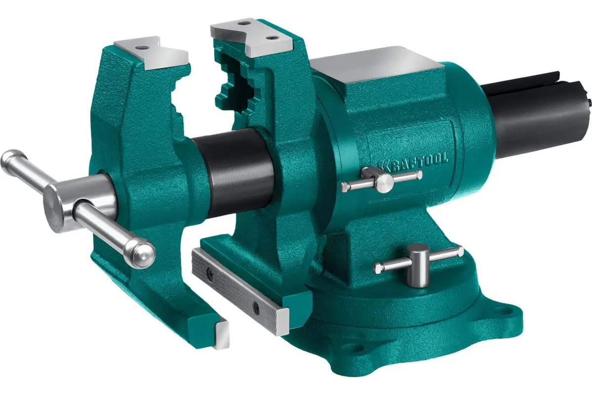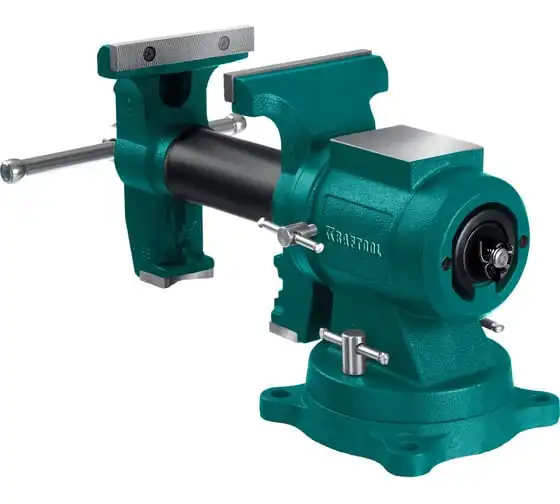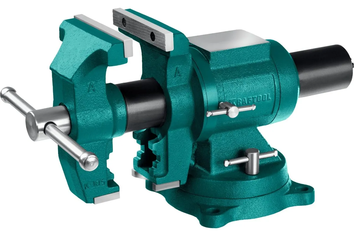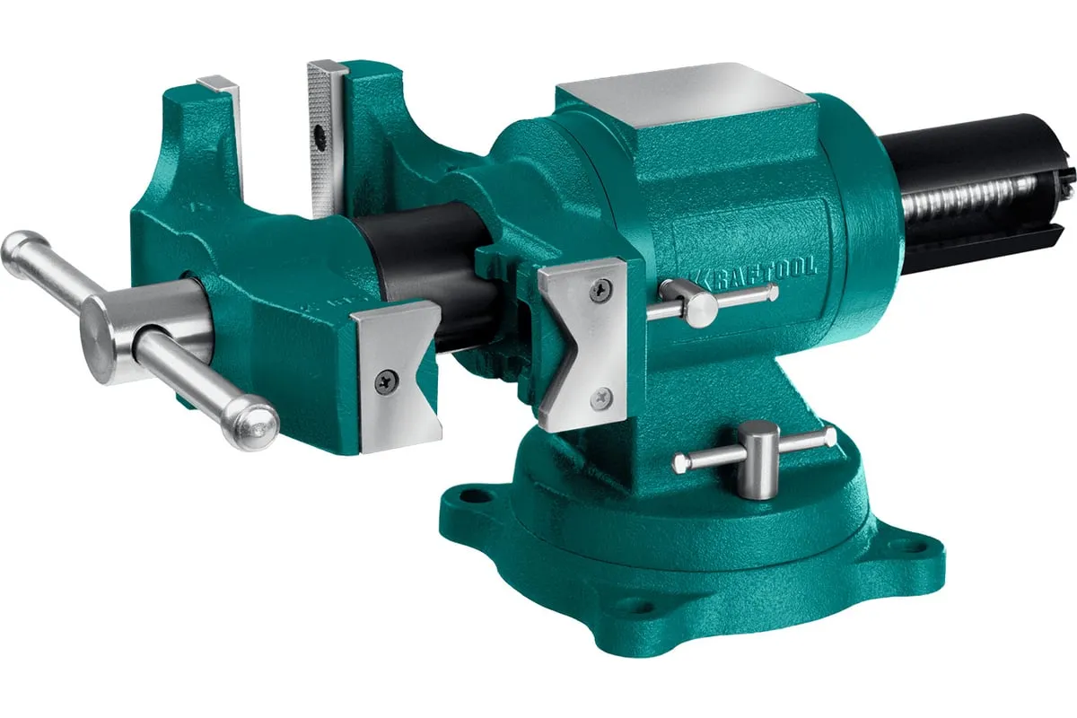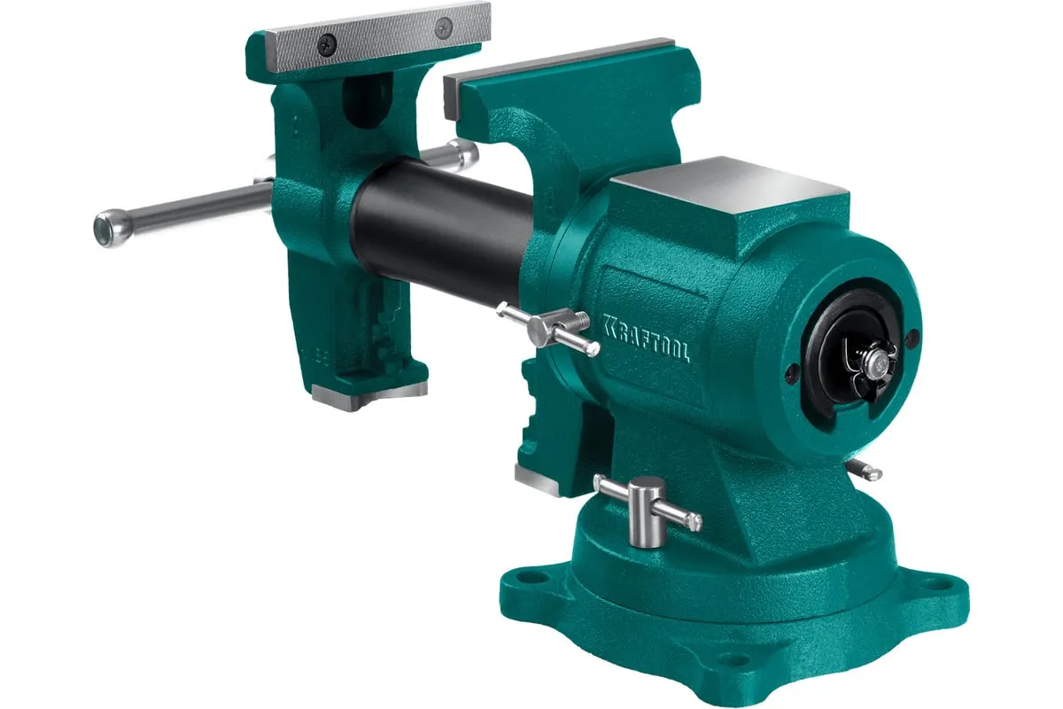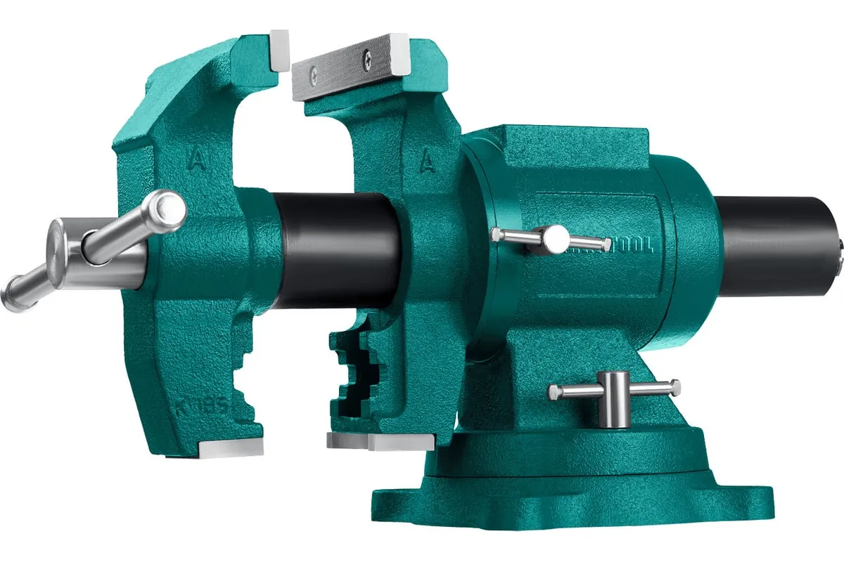 Чугунные слесарные тиски предназначены для зажима различных предметов или их отдельных составных элементов. Профессиональные 3D слесарные тиски с поворотом в двух плоскостях на 360° и блокировкой в каждой из них. Универсальная конструкция позволяет надёжно и одинаково точно фиксировать крупные и компактные заготовки. Корпус из высококачественного чугуна HT-200. Поворотное основание на 360°. Усилие зажима до 3500 кг/см2. Сменные стальные закаленные губки с рифленой поверхностью. Универсальный зажим для труб. Наковальня для мелких слесарных работ.