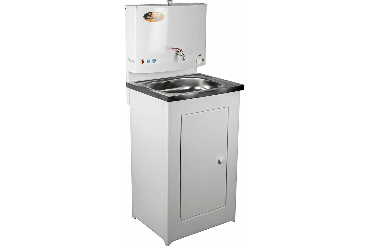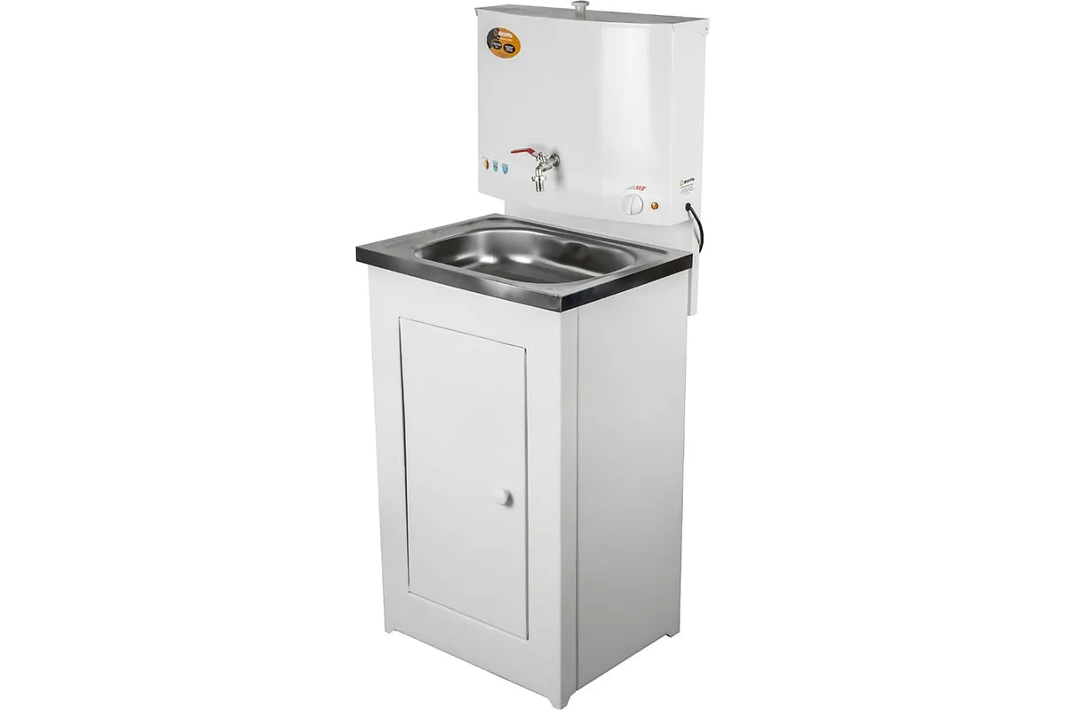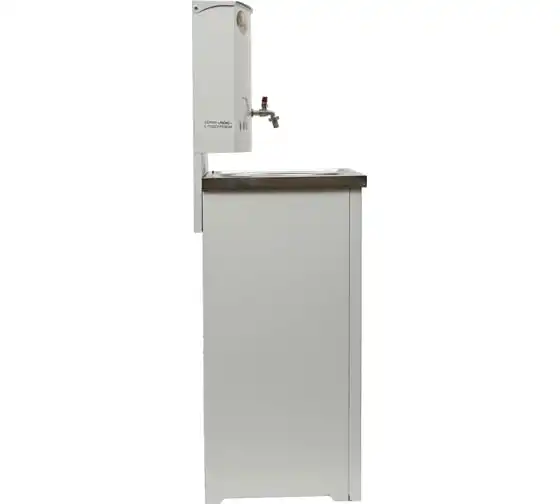 Автономный умывальник «Люкс» Вихрь – отличное решение в тех случаях, когда на участке отсутствует система центрального водоснабжения. Дачный умывальник можно приобрести на дачу, в гараж, мастерскую или в любое другое место, где отсутствует вода. Конструкция дачного умывальника блоковая. Он состоит из тумбы, которая придаёт устойчивость и маскирует слив, бака с системой подогрева и краном, а также раковины, выполненной из нержавеющей стали. Для системы слива умывальника можно использовать отдельную ёмкость или подключить водоотвод к канализации.