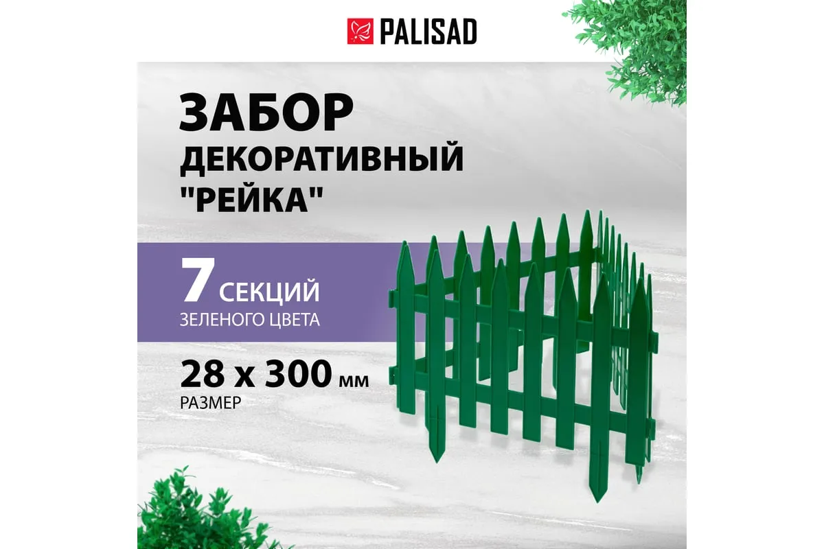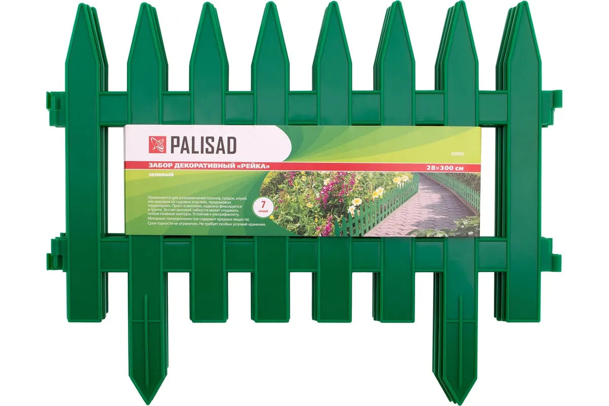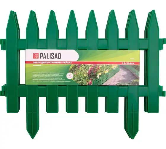 Зеленый декоративный забор Palisad «Рейка» 65005 размером 28 х 300 см позволяет подчеркнуть отдельные зоны озелененной территории. В комплекте 7 оригинальных секций, которые позволяют оформить цветники и грядки, обозначить границы дорожек, оградить деревья и кусты. С заборчиком ландшафт принимает завершенный вид.