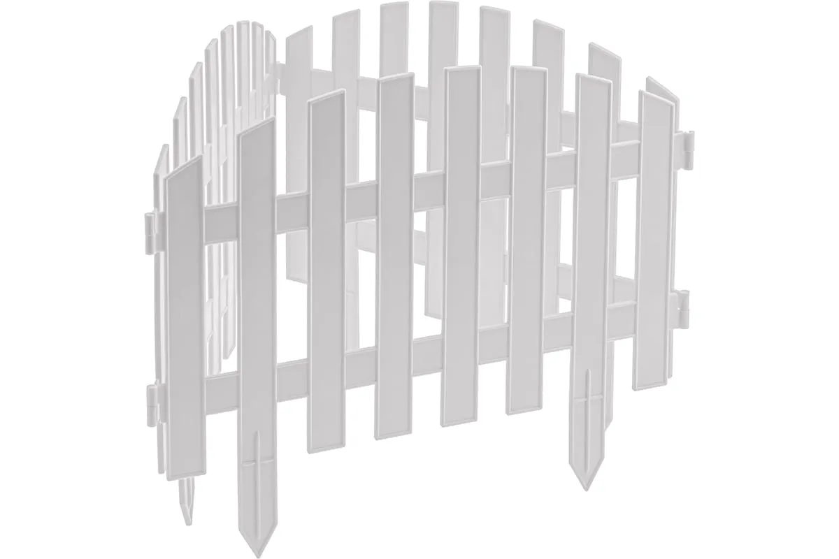 Белый декоративный забор Palisad «Винтаж» 65011 размером 28 х 300 см, предназначен для зонирования территории. Состоит из 7 оригинальных секций общей длиной 300 см. С их помощью можно оформить клумбу, дорожку или зону отдыха, огородить грядки, деревья или кусты. Забор придаст законченный вид территории дачного участка.