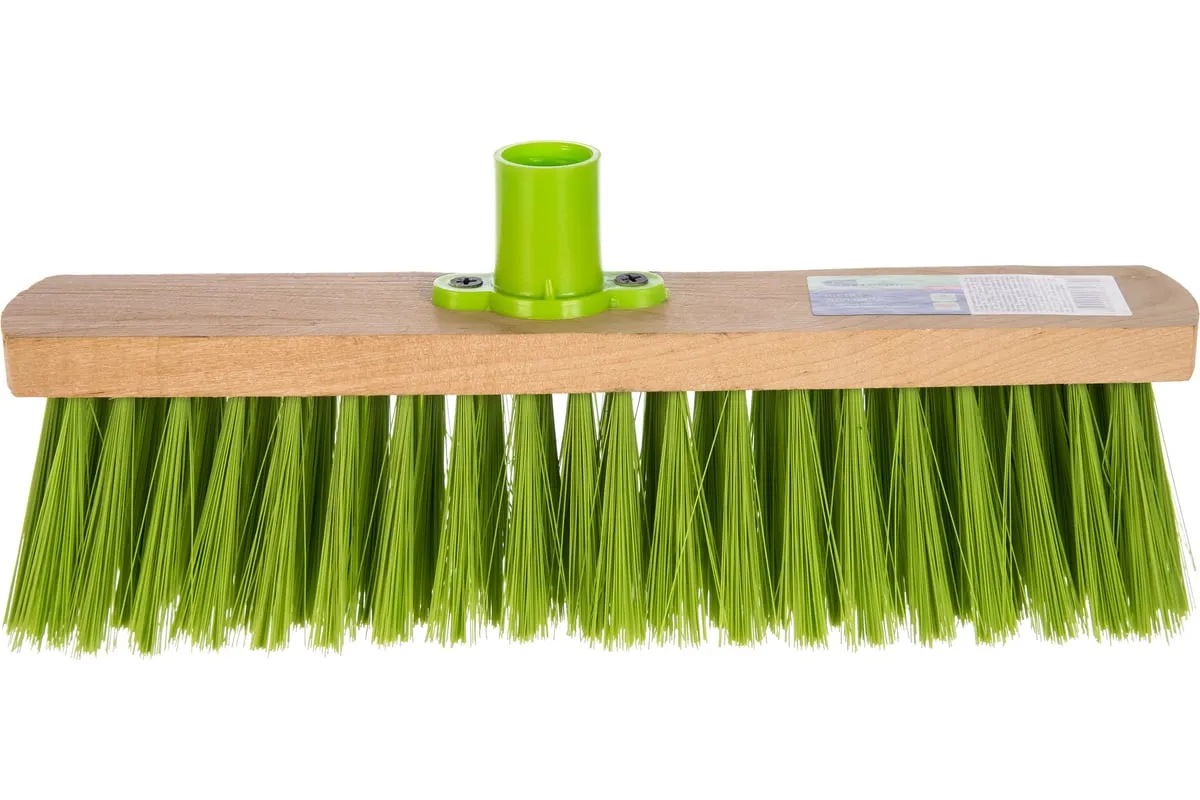 Деревянная щетка Сибртех 84614 длиной 28 см, с щетиной в 5 рядов, с прямой тулейкой с резьбой, без черенка, — хозяйственный инвентарь для подметания пола, дорожек, лестниц, тротуаров, площадок. 5-рядная щетина обеспечивает высокое качество уборки в помещениях и на улице. Тулейка щетки совместима с черенком 68416.