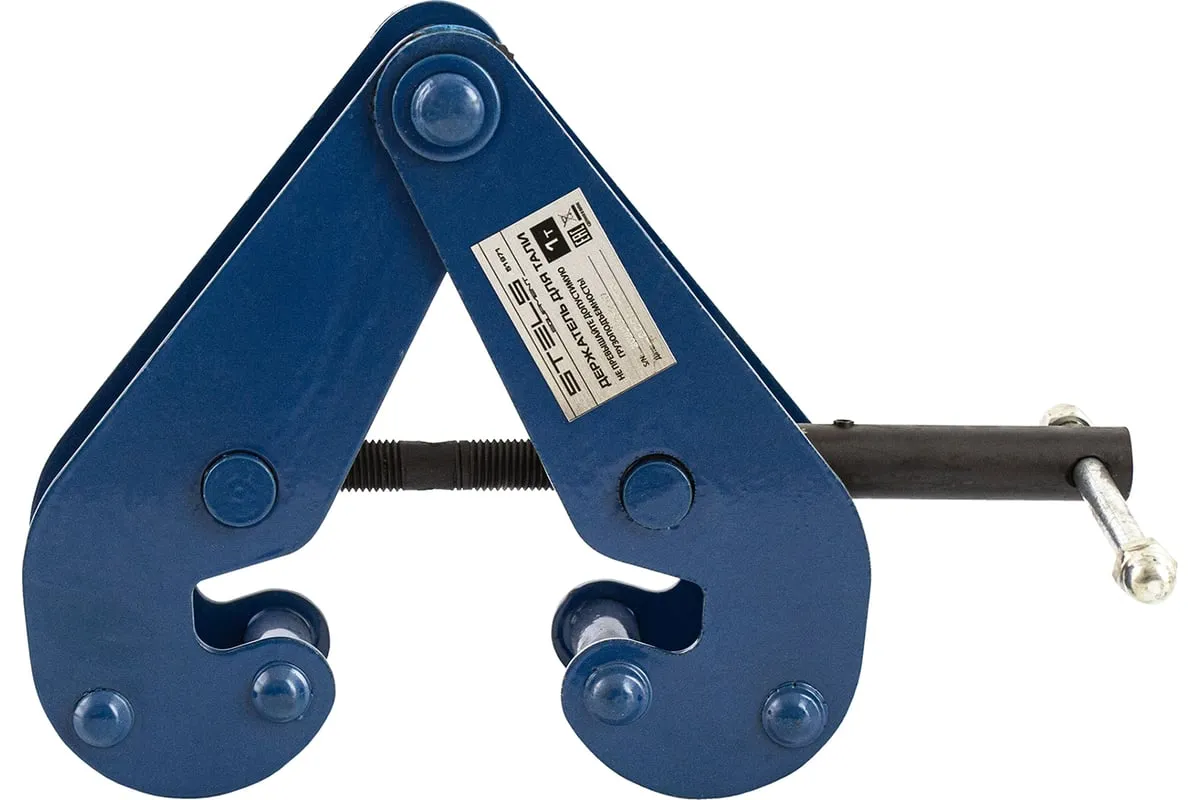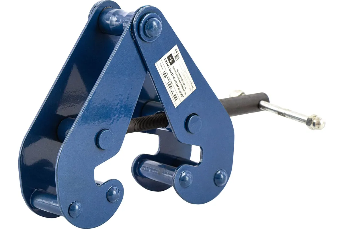 Держатель для тали Stels 51971 позволяет зафиксировать ее на балке шириной от 75 до 220 мм для подъема грузов весом до 1 т. Благодаря симметричной конструкции держателя нагрузка распределяется равномерно по центру балки, что повышает надежность грузоподъемной системы.
