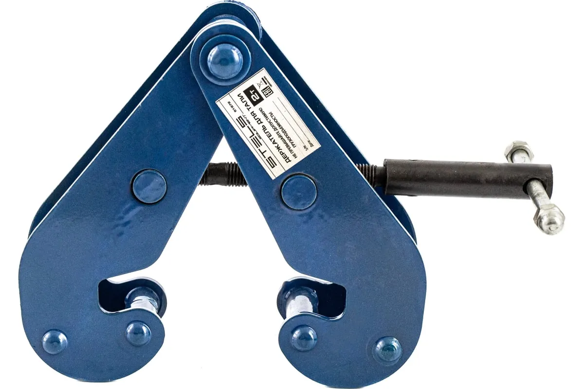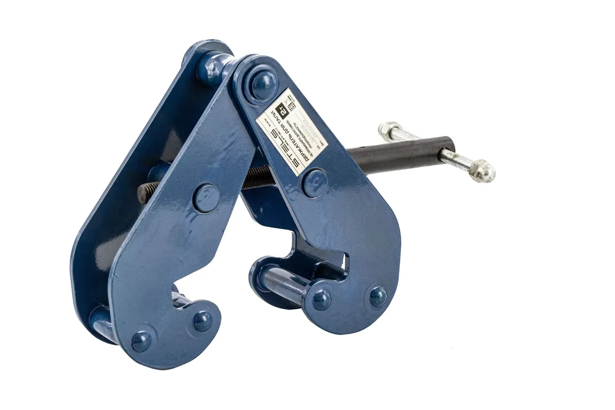 Держатель для тали Stels 51972 позволяет зафиксировать ее на балке шириной от 75 до 220 мм для подъема грузов весом до 2 т. Благодаря симметричной конструкции держателя нагрузка распределяется равномерно по центру балки, что повышает надежность грузоподъемной системы.