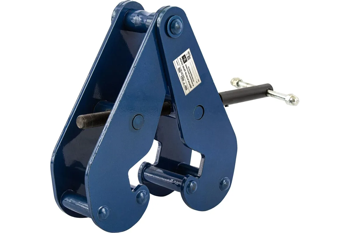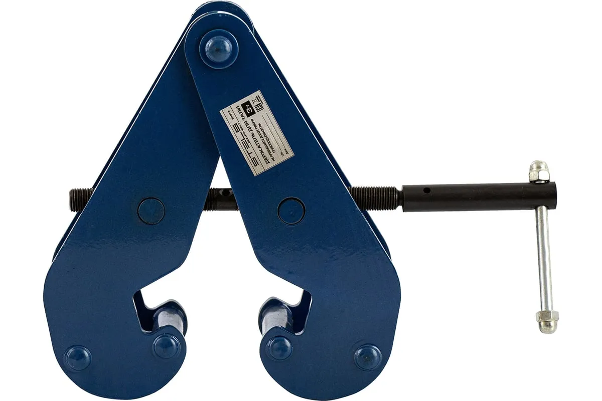 Держатель для тали Stels 51973 позволяет зафиксировать ее на балке шириной от 80 до 320 мм для подъема грузов весом до 3 т. Благодаря симметричной конструкции держателя нагрузка распределяется равномерно по центру балки, что повышает надежность грузоподъемной системы.