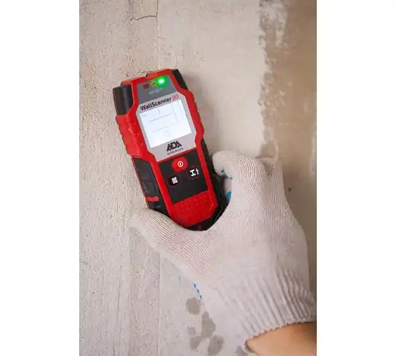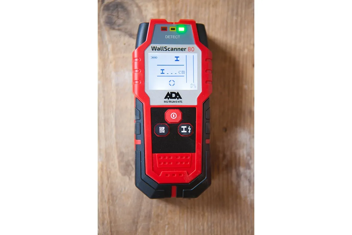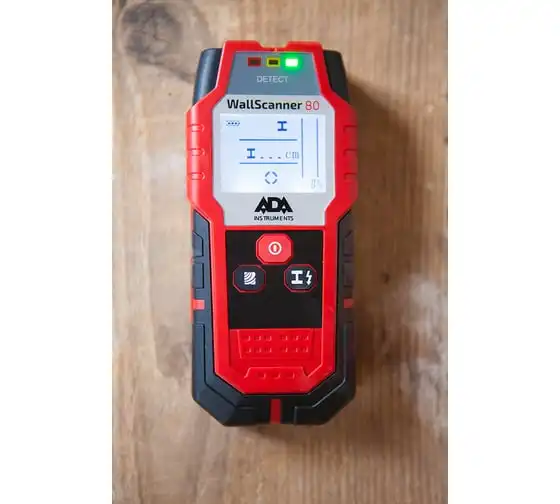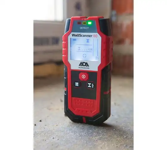 Детектор проводки ADA Wall Scanner 80 А00466 позволяет находить в стенах провода под напряжением, деревянные перекрытия, черные и цветные металлы. Корпус из прочного материала и протекторные накладки делают модель устойчивой к ударам и падениям. Для удобства пользователя прибор оснащается звуковой и светодиодной индикацией (при обнаружении объекта загорается красная лампочка, при отсутствии искомых материалов - зеленая). Детектор находит применение в сфере ремонта и снижает риск случайного повреждения внутренних элементов стен.