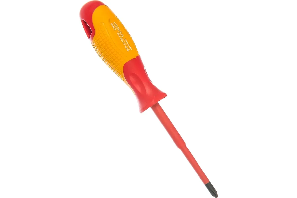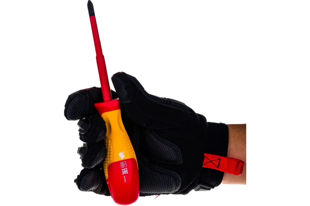 Диэлектрическая отвертка PH2х100мм, CrMo, до 1000В GROSS 12948 служит для работы под высоким напряжением. Изделие обеспечивает повышенную безопасность пользователя. Противоскользящее покрытие рукоятки способствует крепкому обхвату отвертки в процессе выполнения ответственных работ.