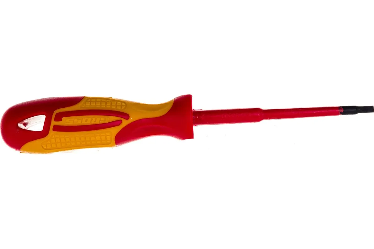 Диэлектрическая отвертка SL3х75мм, CrMo, до 1000В GROSS 12941 - ручной инструмент для проведения ремонтно-сборочных работ под напряжением. Изоляция выполнена из надежного и безопасного материала, выдерживает напряжение до 1000 В.