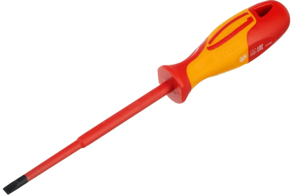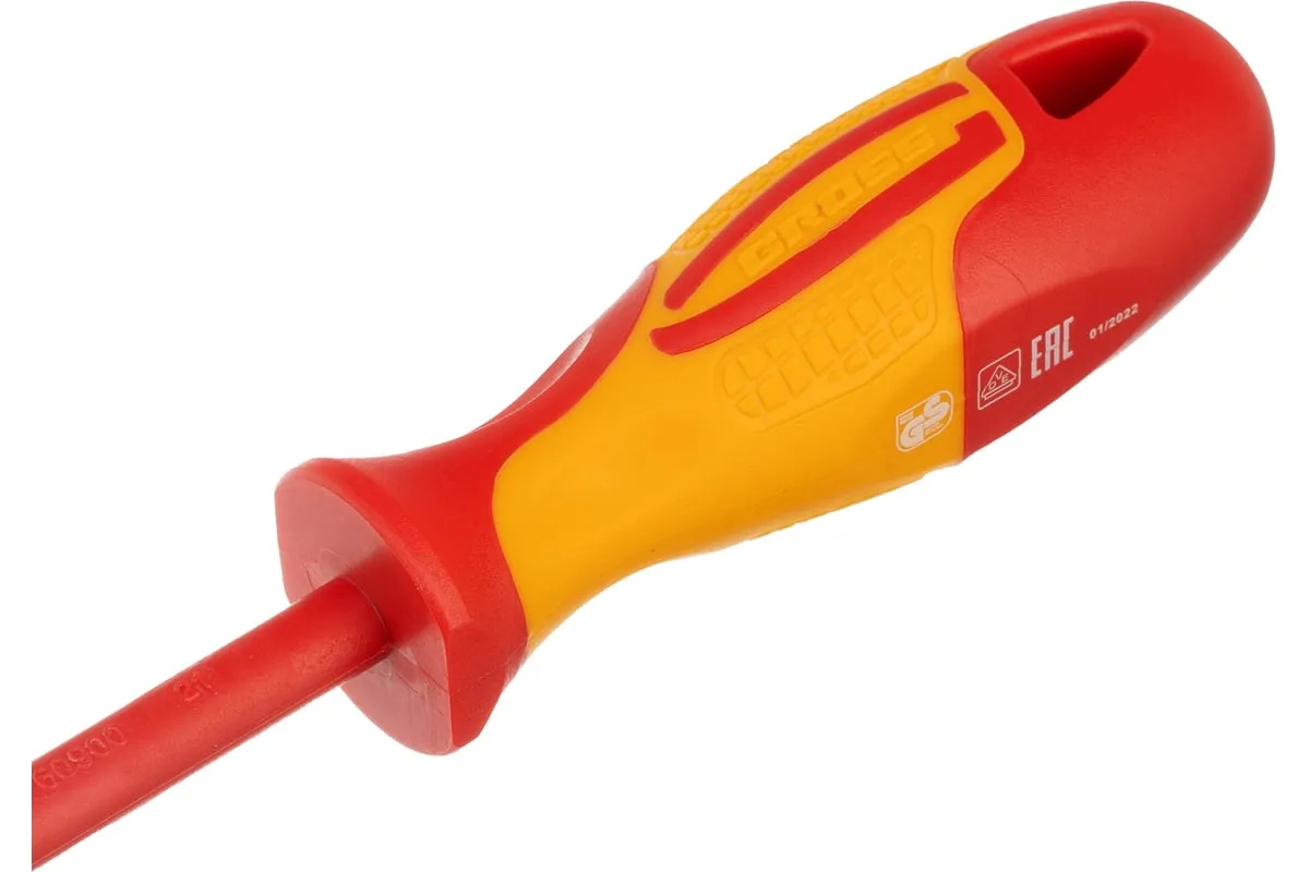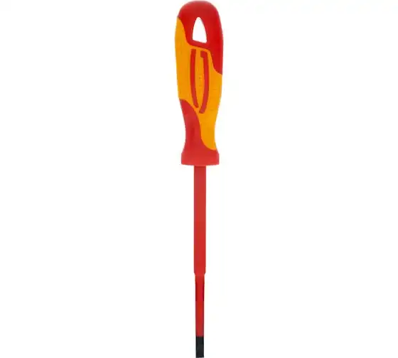 Диэлектрическая отвертка SL5.5х125мм, CrMo, до 1000В GROSS 12943 предназначается для ремонта и обслуживания различных электроустановок, находящихся под высоким напряжением (до 1000 Вольт). Отвертка удобно располагается в ладони мастера, не выскальзывает в процессе выполнения крепежных работ.