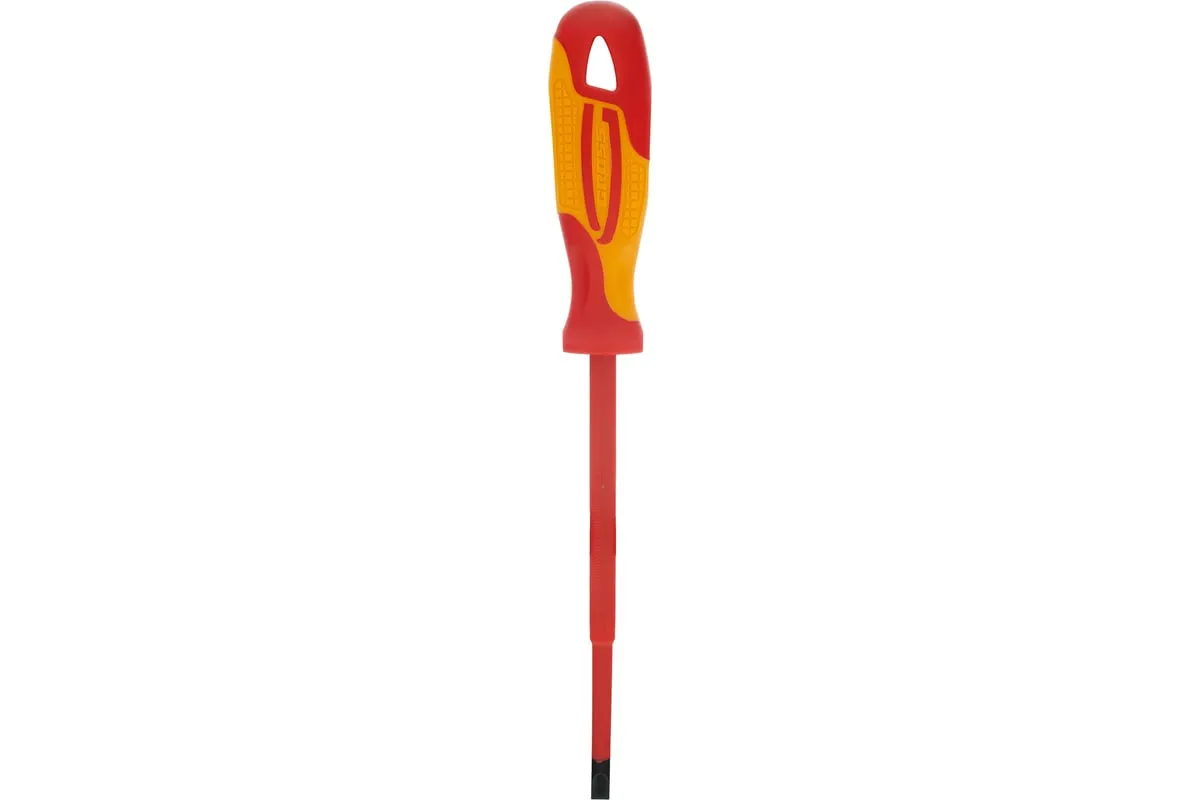 Диэлектрическая отвертка SL6.5х150мм, CrMo, до 1000В GROSS 12944 широко используется в профессиональной сфере электромонтажных работ. Позволяет осуществлять крепежные работы с различными конструкциями и установками, которые подключены к высокому напряжению. Высококачественный изоляционный слой отвертки выдерживает нагрузки до 1000 В переменного тока.