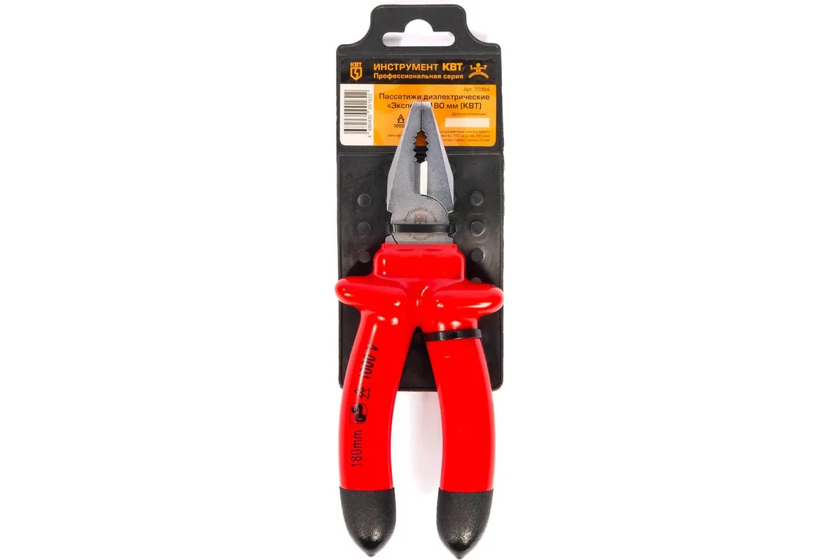 Диэлектрические пассатижи КВТ Эксперт 180 70354 - ручной инструмент для работы под напряжением до 1000 В. Имеют зоны захвата для круглых и плоских деталей. Модель прослужит длительное время благодаря матовому никелированному покрытию рабочей части.