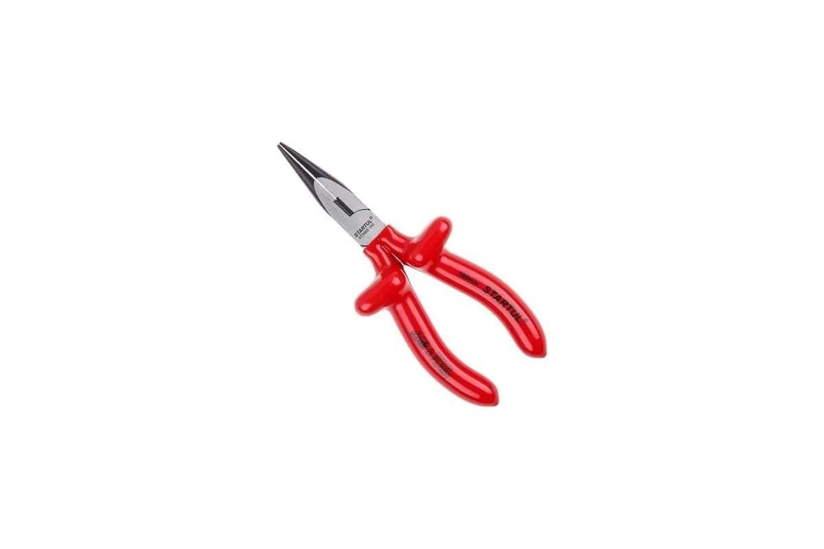 Диэлектрические тонкогубцы STARTUL Profi 160 мм ST3062-160 предназначены для выполнения электромонтажных работ под напряжением до 1000 В. Рабочая часть выполнена из качественной хромованадиевой стали, что обеспечивает прочность и долговечность. Никелированное покрытие защищает инструмент от коррозии. Рукоятки выполнены из двухслойной диэлектрической пластизоли и имеют защитные выступы, препятствующие контакту руки с объектом, находящимся под напряжением. Инструмент соответствует электротехническим нормам безопасности Германского союза электротехников - VDE (Veiband Deutscher Electrotechniker).