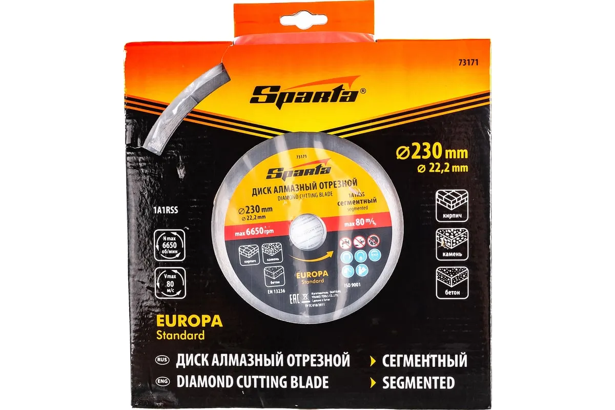 Диск алмазный отрезной сегментный EUROPA Standard 230x22.2 мм SPARTA 73171 используется при сухой резке бетона, мрамора и т.д. Алмазная крошка и оптимально подобранная связка обеспечивает высокий ресурс реза. Основание штампованное, ширина режущей части 7 мм. Внимание! Изображение товара может отличаться от реального.