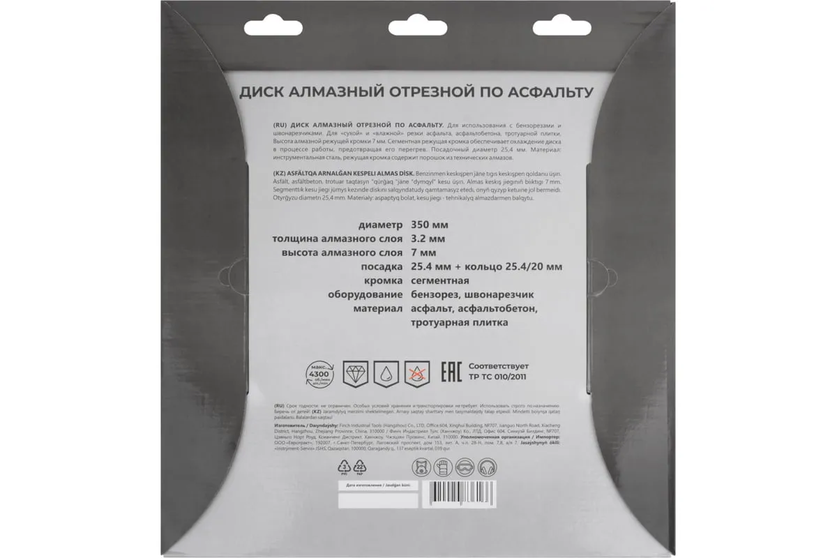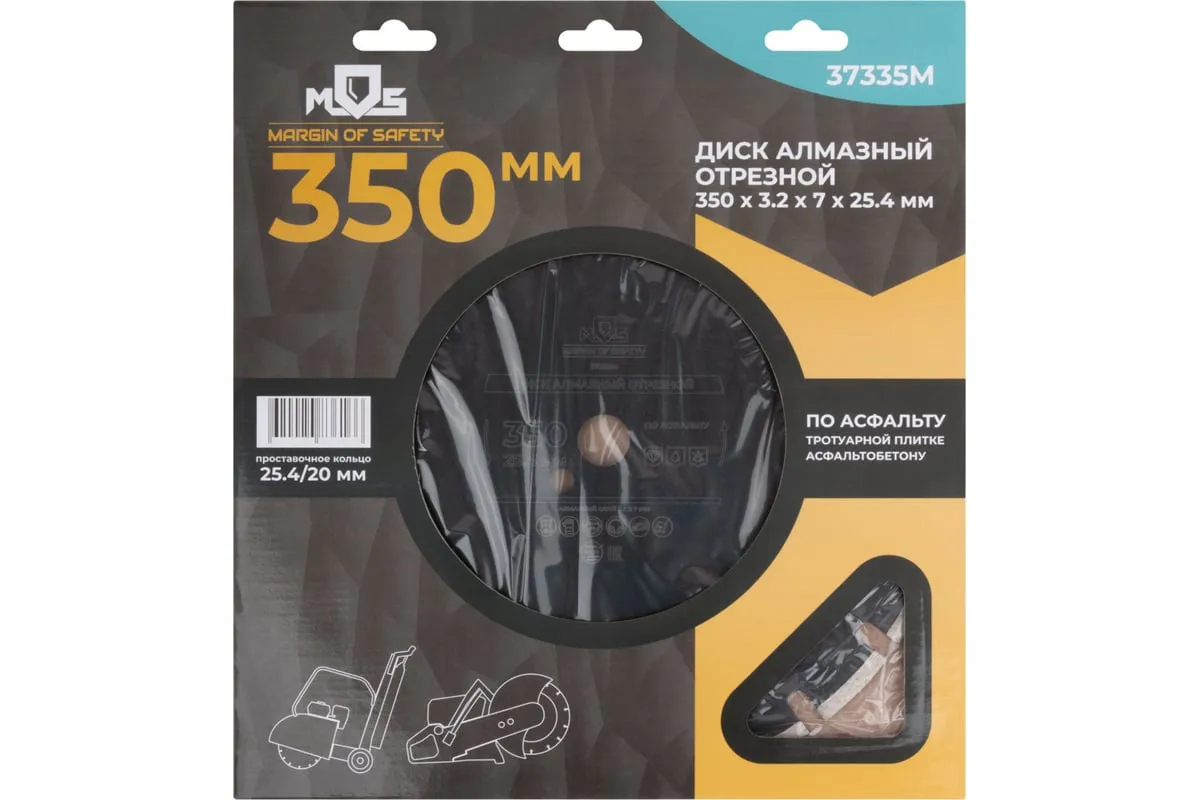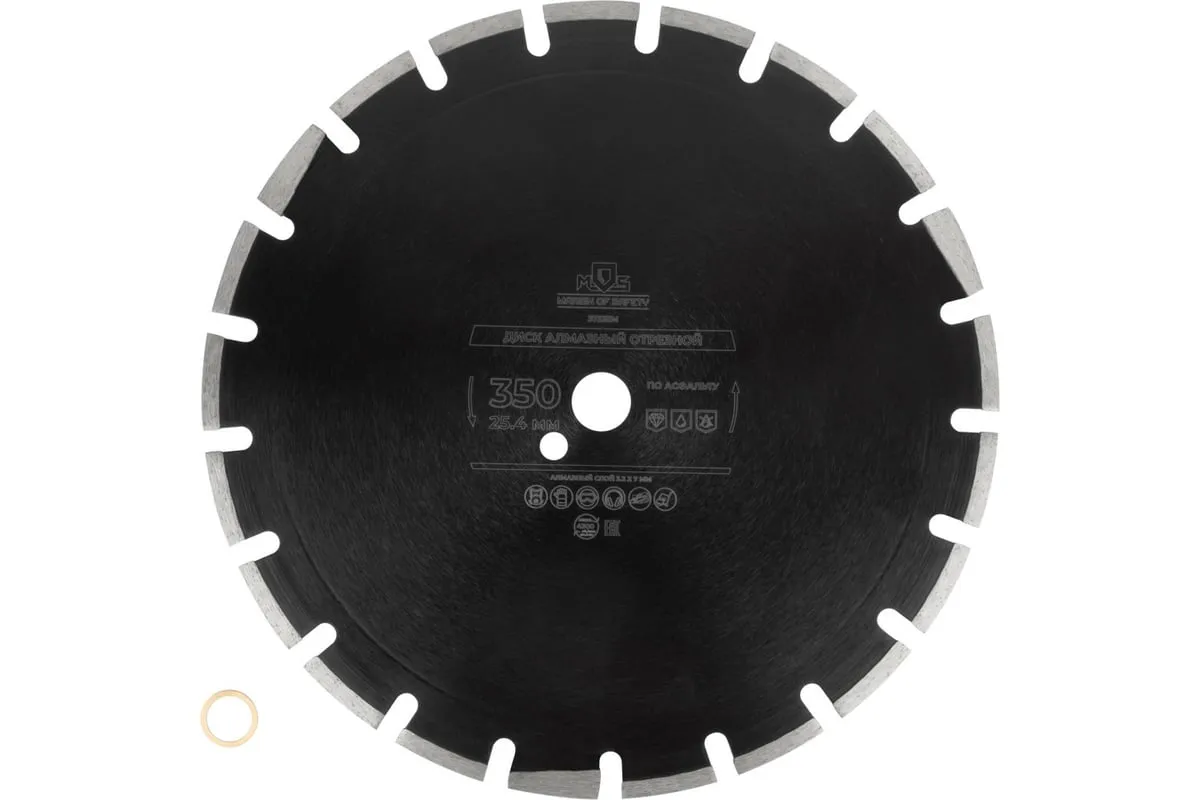 Диск отрезной алмазный по асфальту 350x3.2x7х25.4 мм MOS 37335М для сухой и влажной резки асфальта, асфальтобетона и тротуарной плитки.