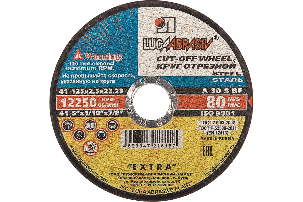 Диск отрезной по металлу 125х22х2,5 мм, А30 Луга D11001252225000 оптимально подойдет для резки металлоконструкций и изделий.