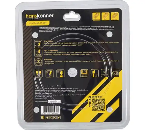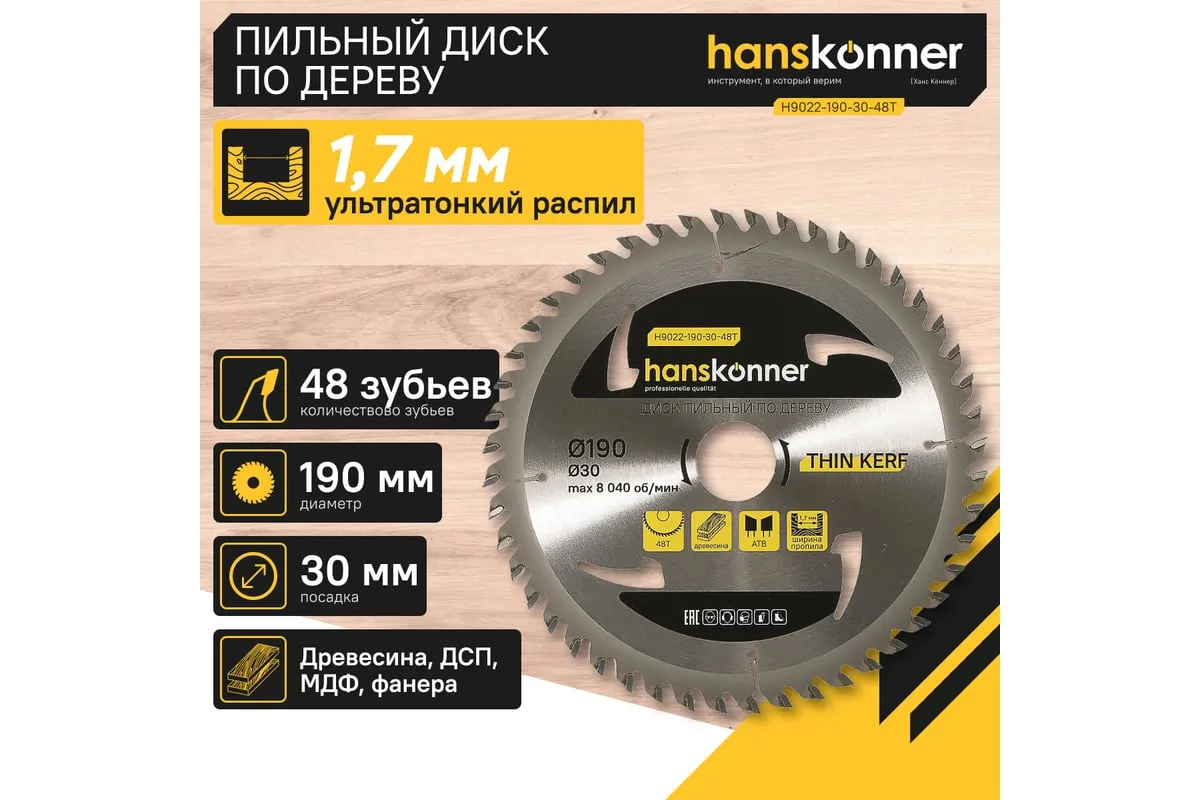 Предназначен для аккумуляторных циркулярных пил. Подходит для поперечного распила мягкой и твердой древесины, ДСП, МДФ, фанеры.