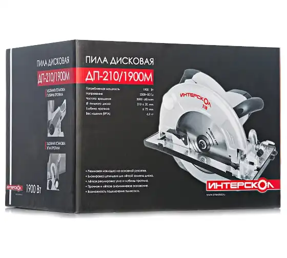 Дисковая пила Интерскол ДП-210/1900 М 98.1.1.20 - мощная конструкция для профессионального использования. Справляется с распиловкой на глубину до 75 мм разнообразных материалов (фанера, ламинат, доски). Пилу оснастили мотором мощностью 1900 Вт, что позволяет использовать диск диаметром 210 мм. Имеет плавный пуск, защиту от перегрузки. Всё это упрощает эксплуатацию пилы и увеличивает ее срок службы.