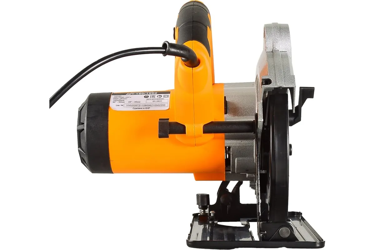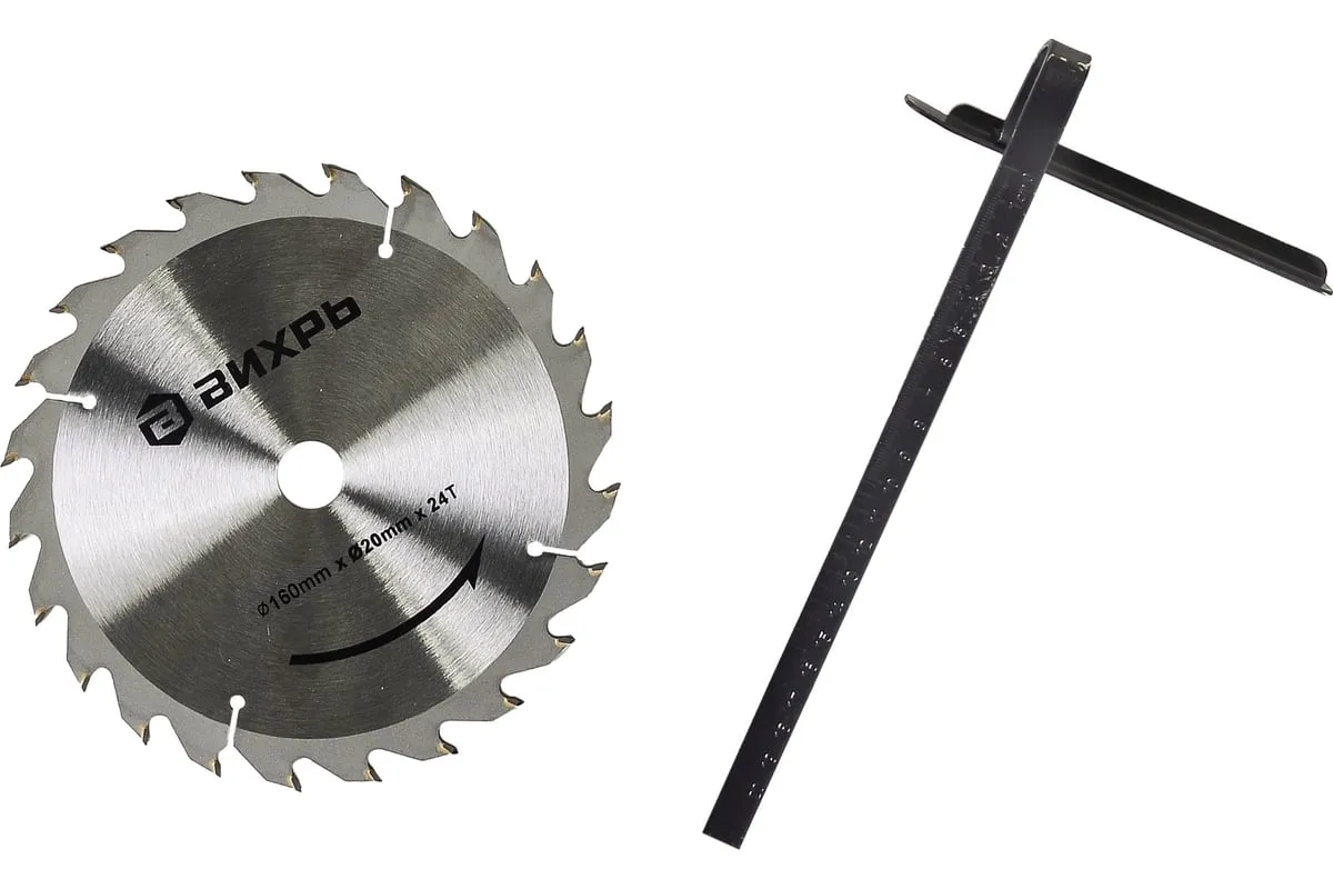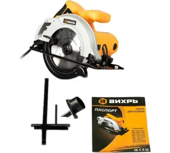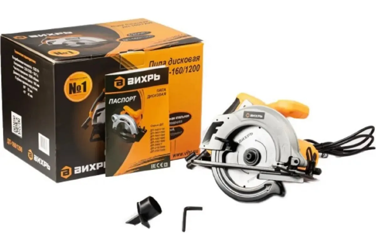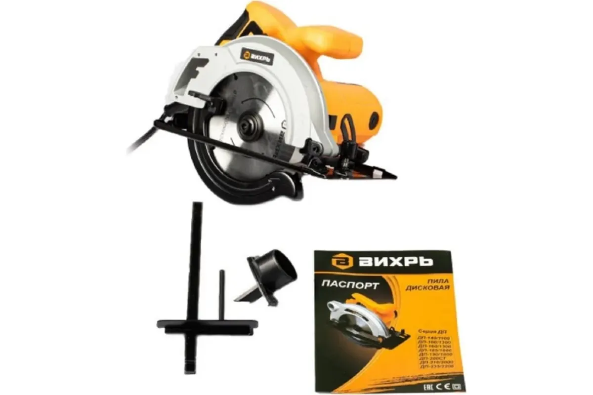 Вихрь ДП-160/1200 — это компактная дисковая пила для бытового использования. Электродвигатель мощностью 1200 Вт позволяет производить продольные и поперечные распилы изделий из древесины. Размер пильного диска составляет 160 мм. Он способен набирать скорость вращения до 5500 об/мин. Максимальная глубина пропила зависит от угла наклона пилы во время работы. При 45° она равна 40 мм, при 90° - 52 мм.