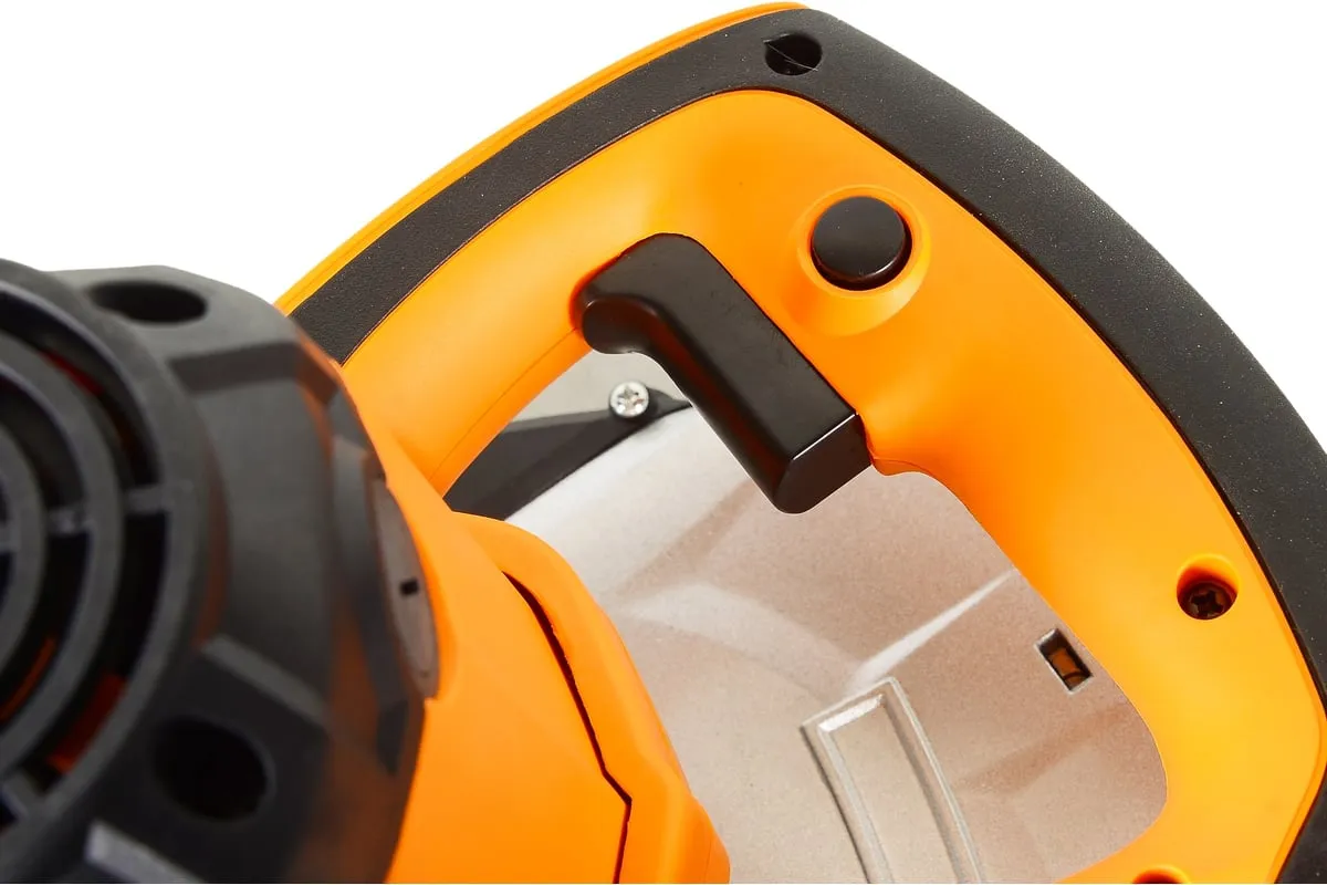 Циркулярная пила Вихрь ДП-160/1200 имеет маятниковый кожух, закрывающий пильный диск. Это снижает уровень пыли в помещении и защищает от травм в процессе эксплуатации. Эргономичная рукоятка с прорезиненными вставками исключает скольжение и обеспечивает надежный хват. Опорная подошва имеет регуляторы глубины и угла пропила. Клавиша кнопки запуска располагается на рукоятке для удобного и своевременного включения и выключения. Малый вес и компактные габариты позволяют без труда хранить и транспортировать инструмент.