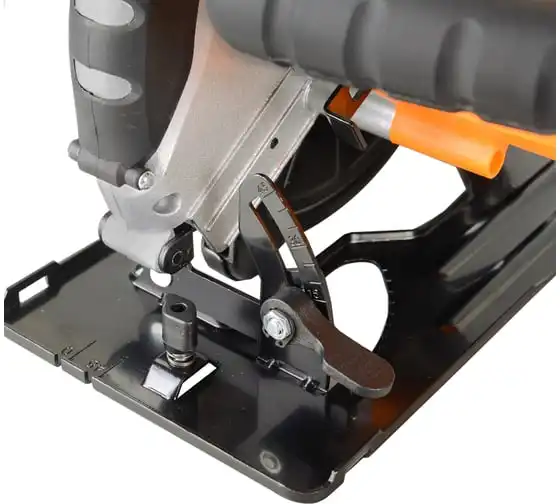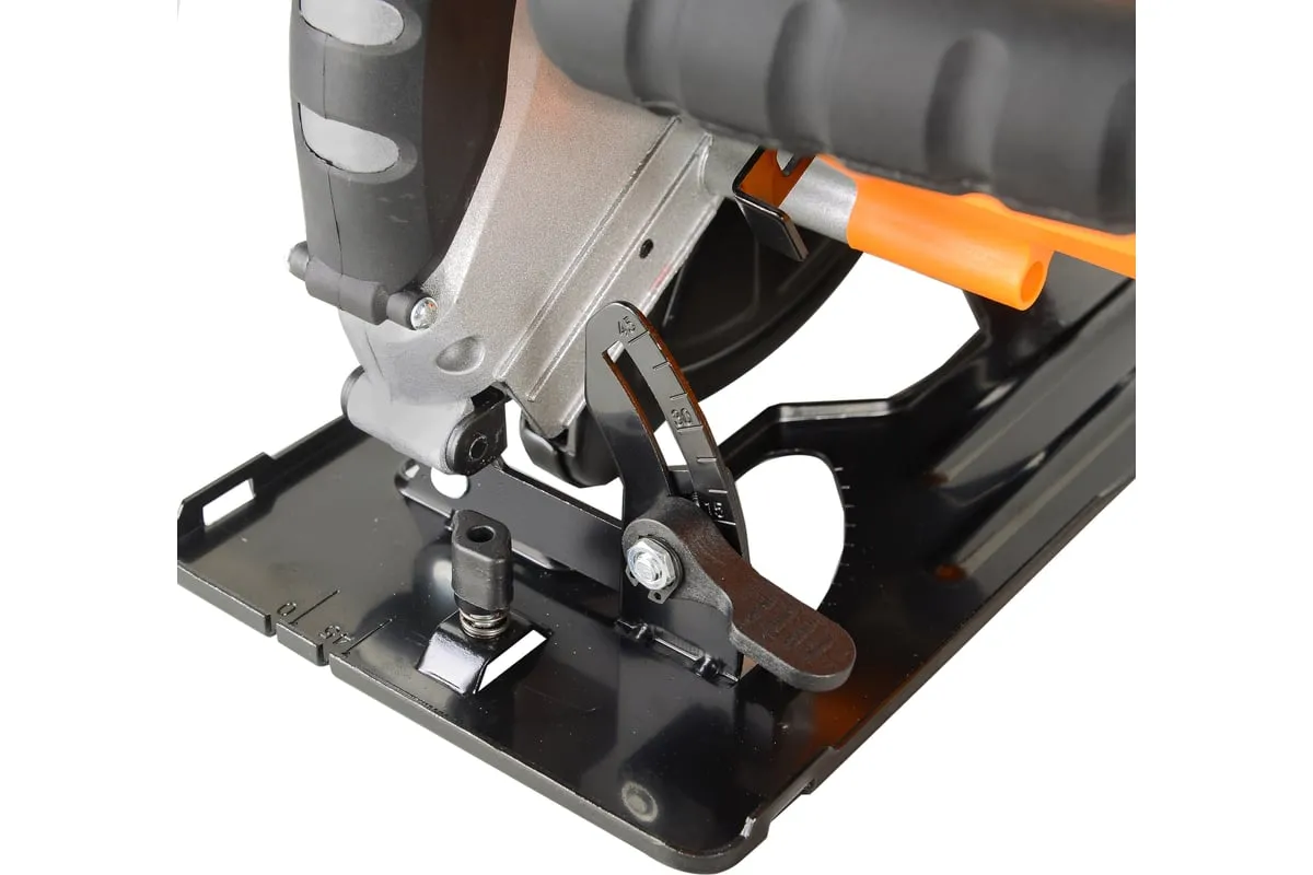 Использование дополнительных пильных дисков расширяет возможности эксплуатации и позволяет распиливать заготовки из плотных листовых материалов, цветных металлов и пластика. Подошва инструмента имеет специальные крепежные элементы для установки направляющей шины. Она обеспечивает ровный распил по всей длине.