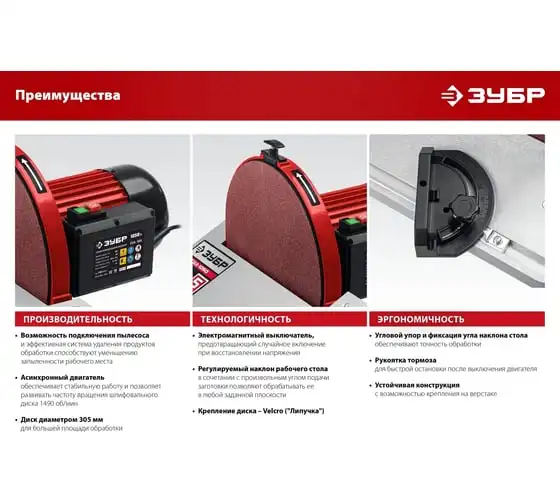 Дисковый шлифовальный станок применяется для обработки деревянных заготовок с помощью гибких абразивных материалов. Модель используется для шлифования заготовок под различными углами. Сочетание высокой мощности жёсткой конструкции. Простая настройка и замена абразивного инструмента благодаря системе крепления Velcro. Возможность подключения пылесоса и эффективная система удаления продуктов обработки способствуют уменьшению запыленности рабочего места.