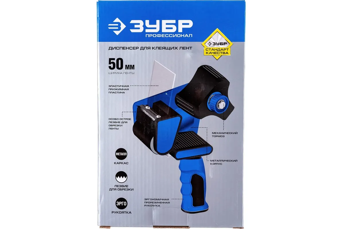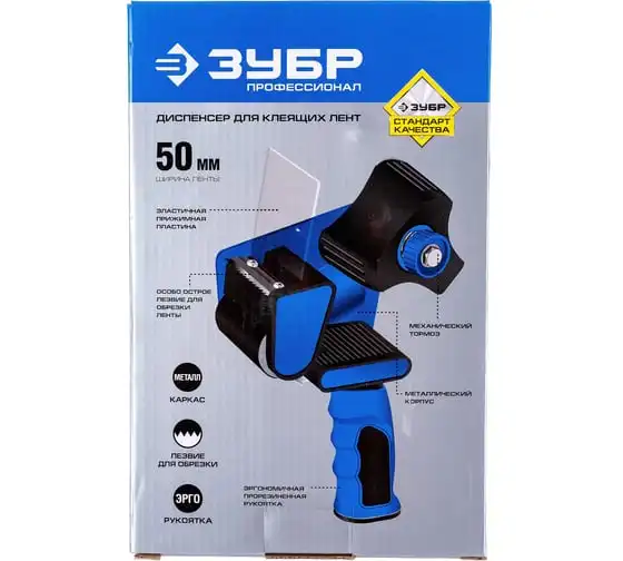 Прочный диспенсер для упаковочной ленты предназначен для удобного склеивания коробок, швов и стыков различных изделий. Устройство оснащено острым ножом, позволяющим отрезать нужное количество клейкой ленты, и прижимным роликом, обеспечивающим длительную склейку нужных поверхностей. Диспенсер позволяет контролировать направление упаковочной ленты, ровно распределять её по стыку, интенсивно осуществляя процесс заклеивания. Лента, расходуемая с помощью диспенсера, не запылится.