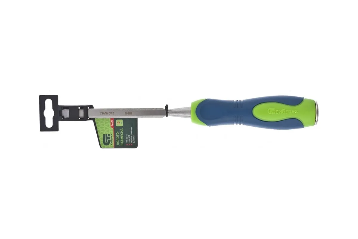 Долото-стамеска, 10мм, двухкомпонентная рукоятка СИБРТЕХ 24475 разработана для: Профилированная рукоятка удобна для ладони, а скошенные грани исключают застревание в древесине.
