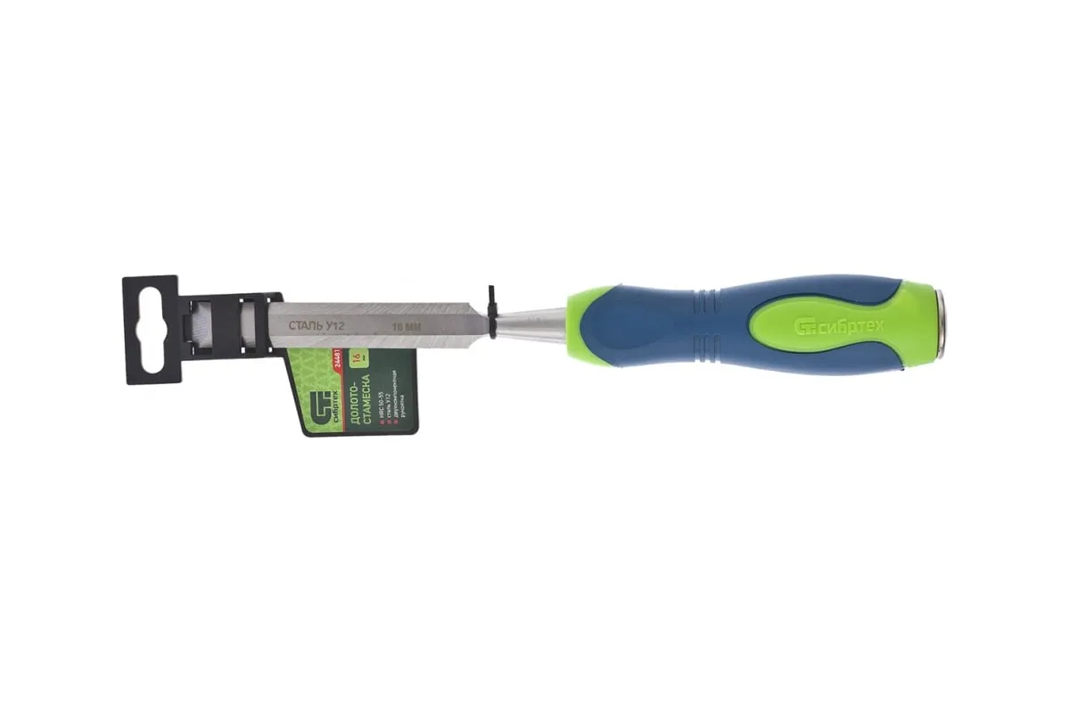 Долото-стамеска Сибртех 24481 с двухкомпонентной рукояткой — ручной инструмент с шириной режущей части 16 мм для столярных и плотницких работ с массивом натурального дерева. Под ударом киянки или небольшого молотка долото-стамеска легко врезается в древесину любых пород, что позволяет получать аккуратные прямоугольные пазы, снимать фаски, зачищать гнезда и т.д.