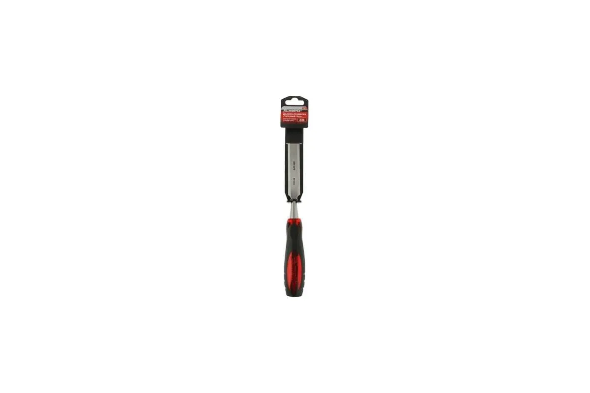 Долото-стамеска 16 мм MATRIX Тигровый глаз 24511 - это прочный и качественный ручной инструмент, который имеет удобную двухкомпонентную рукоятку с противоударными и противоскользящими свойствами, а также сквозной стальной стержень с металлическим затыльником. Изделие прослужит долгое время даже при высоких нагрузках.