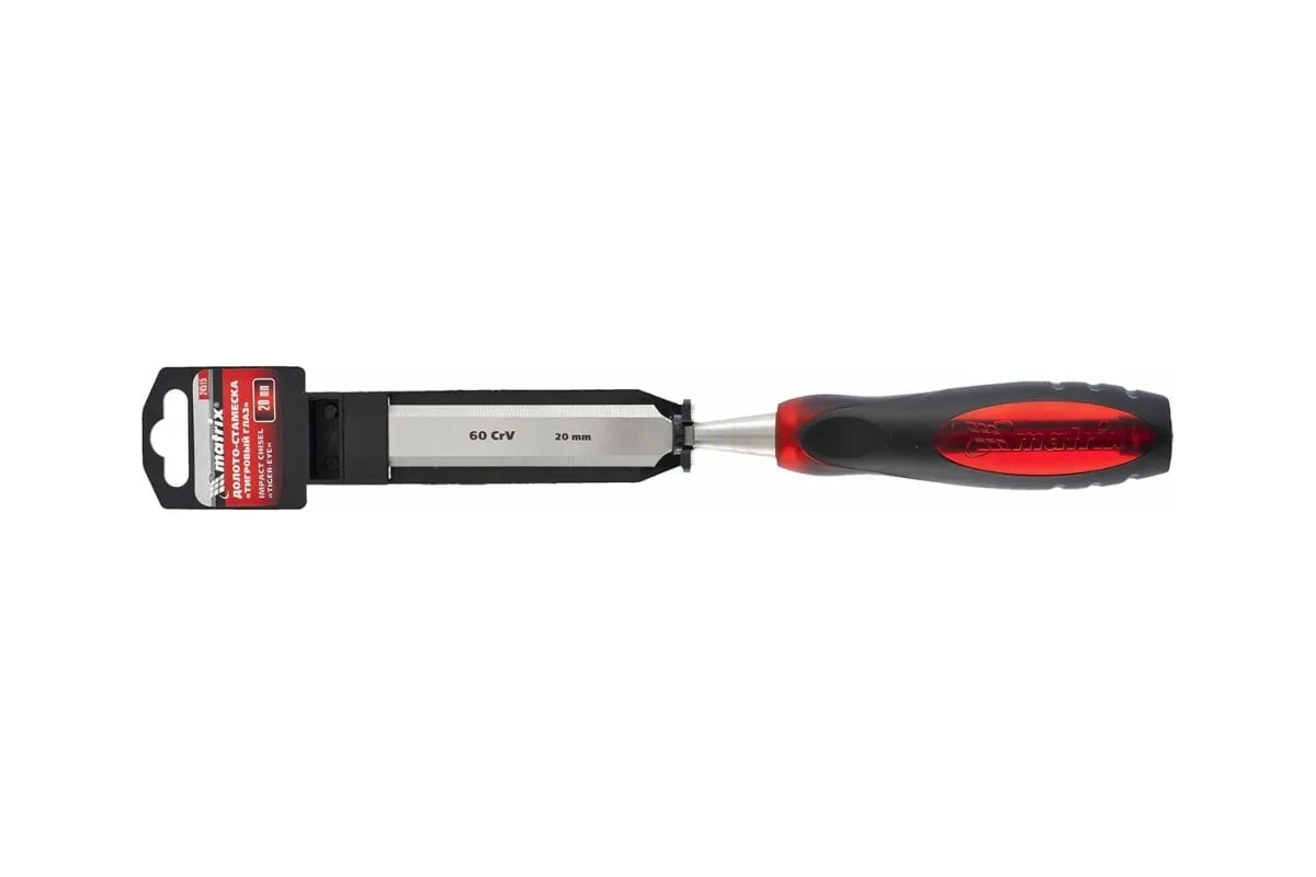 Долото-стамеска 20 мм MATRIX Тигровый глаз 24515 представляет собой специальный ручной инструмент, который служит для вытачивания, прорезания и выдалбливания пазов, гнезд и отверстий в деревянных заготовках при выполнении столярно-плотницких работ. Изделие удобно лежит в руке благодаря эргономичной форме двухкомпонентной рукоятки.