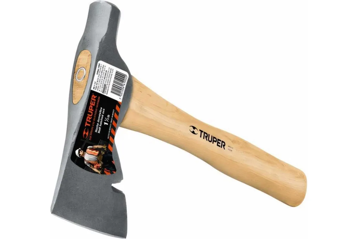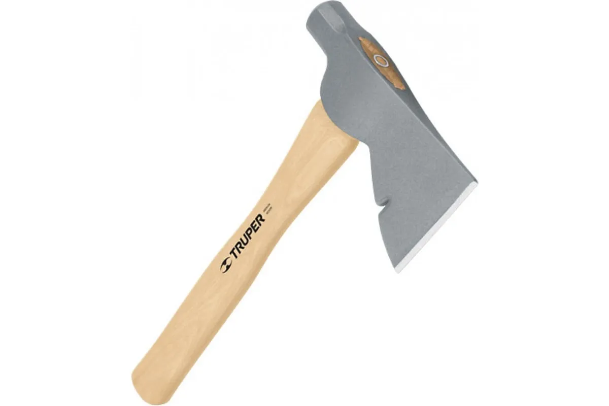 Домашний топор Truper HH-1-1/2 14952 представляет собой удобный в работе ручной инструмент, который состоит из стальной рабочей части и деревянной рукоятки эргономичной формы. Голова топора оснащена лезвием, ударным бойком и насечкой, что расширяет возможности применения.