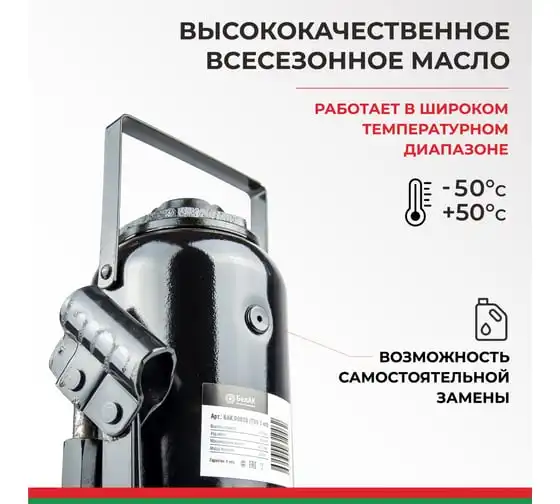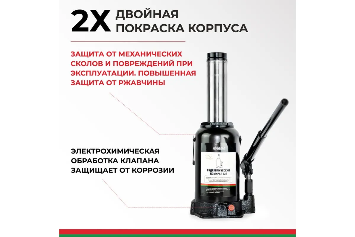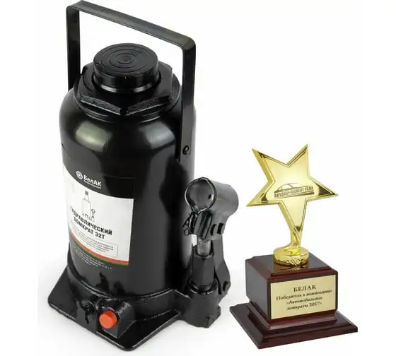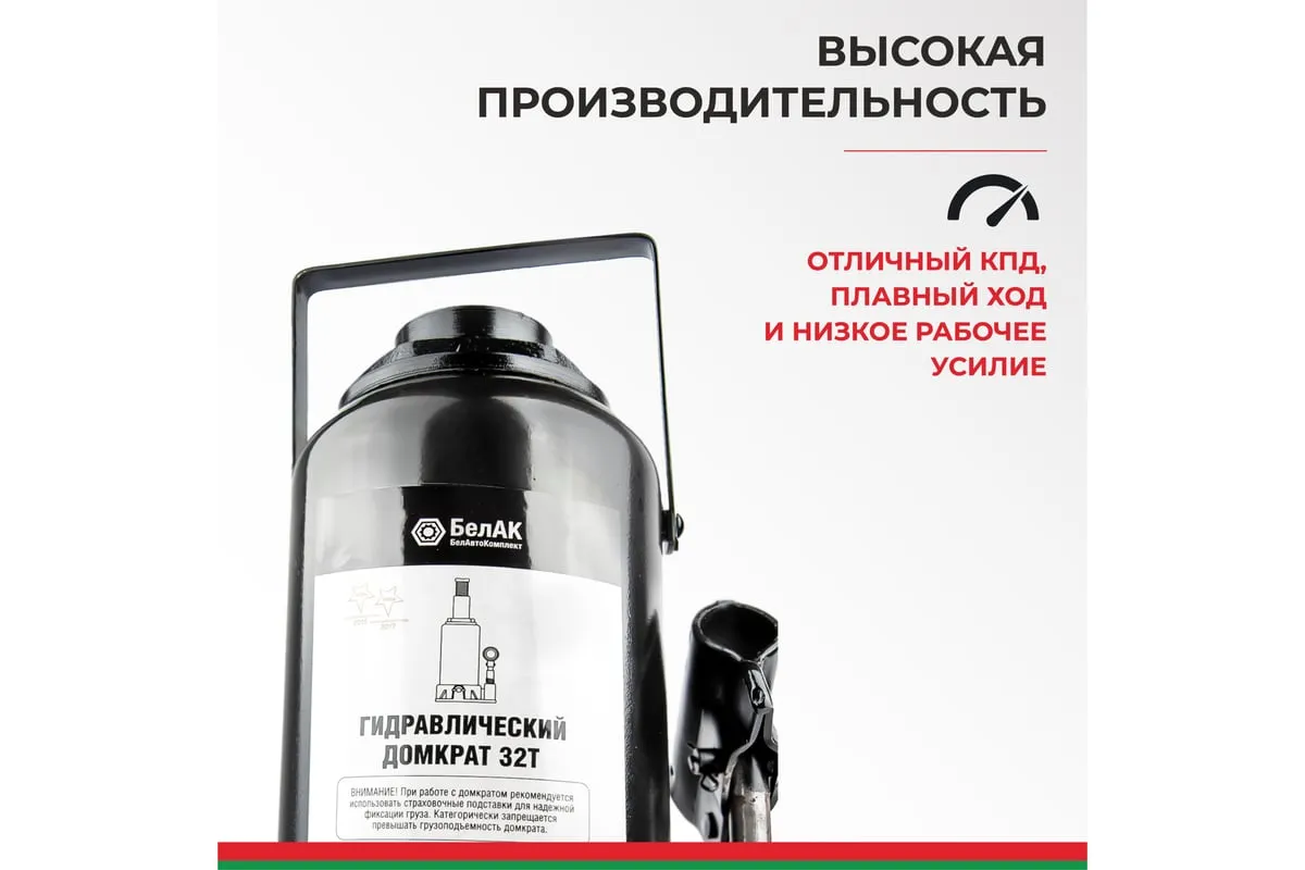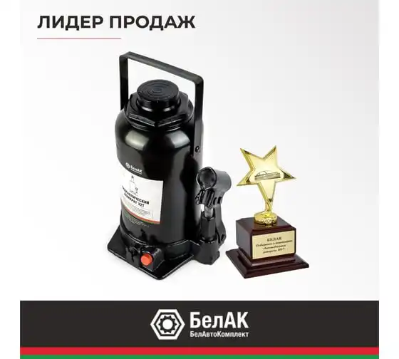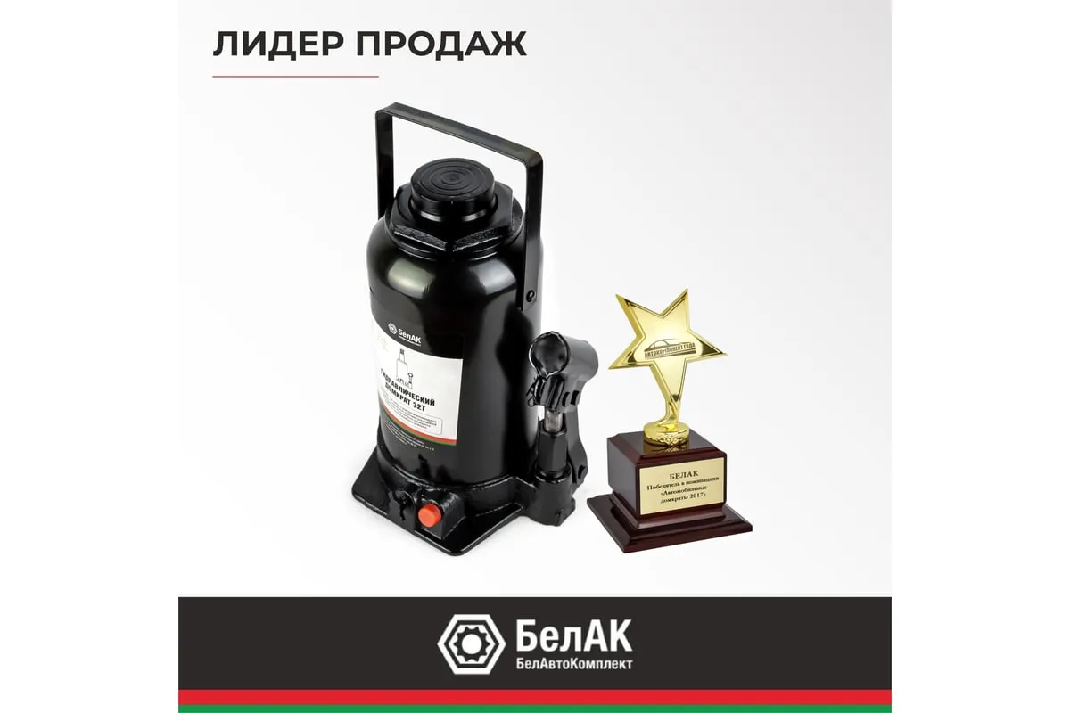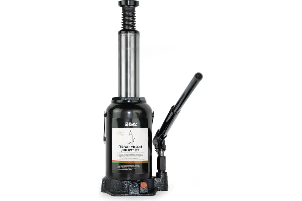Домкрат БелАК 32 т, TUV, 2 клапана БАК.00037 разработан российским производителем «БелАК», награждённым двумя национальными премиями «Автокомпонент года» и «Автоаксессуар года» за высокое качество и надежность выпускаемых домкратов. Продукция «БелАК» соответствуют нормам сертификации ISO9001 и ЕАС.