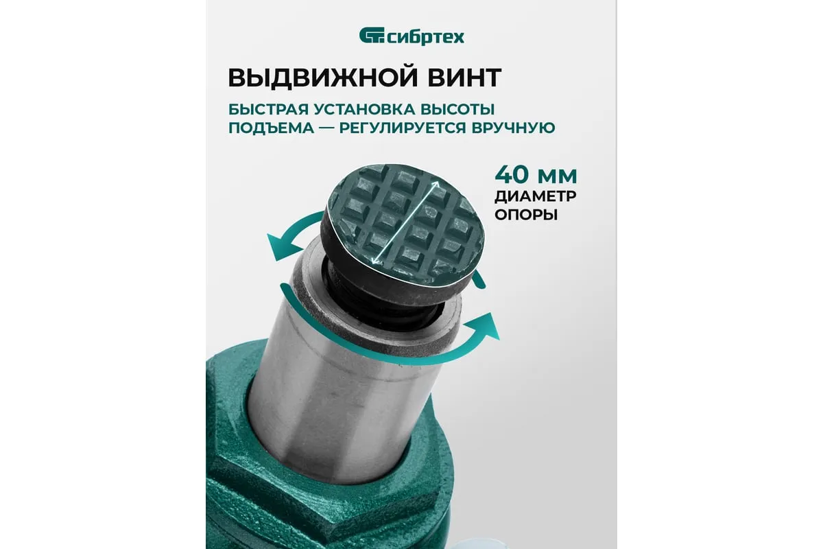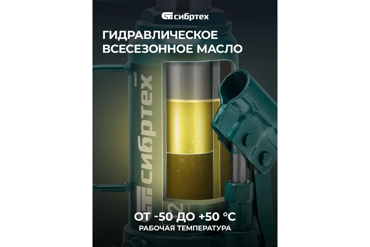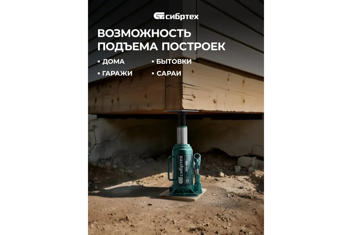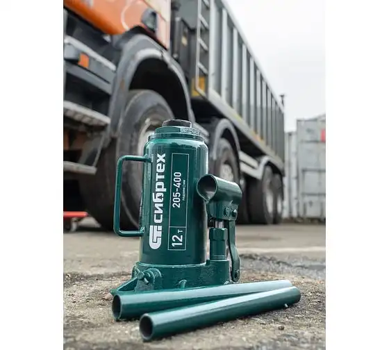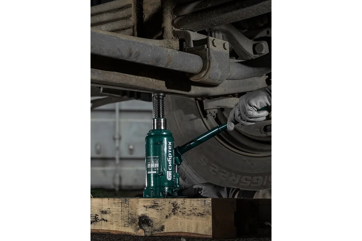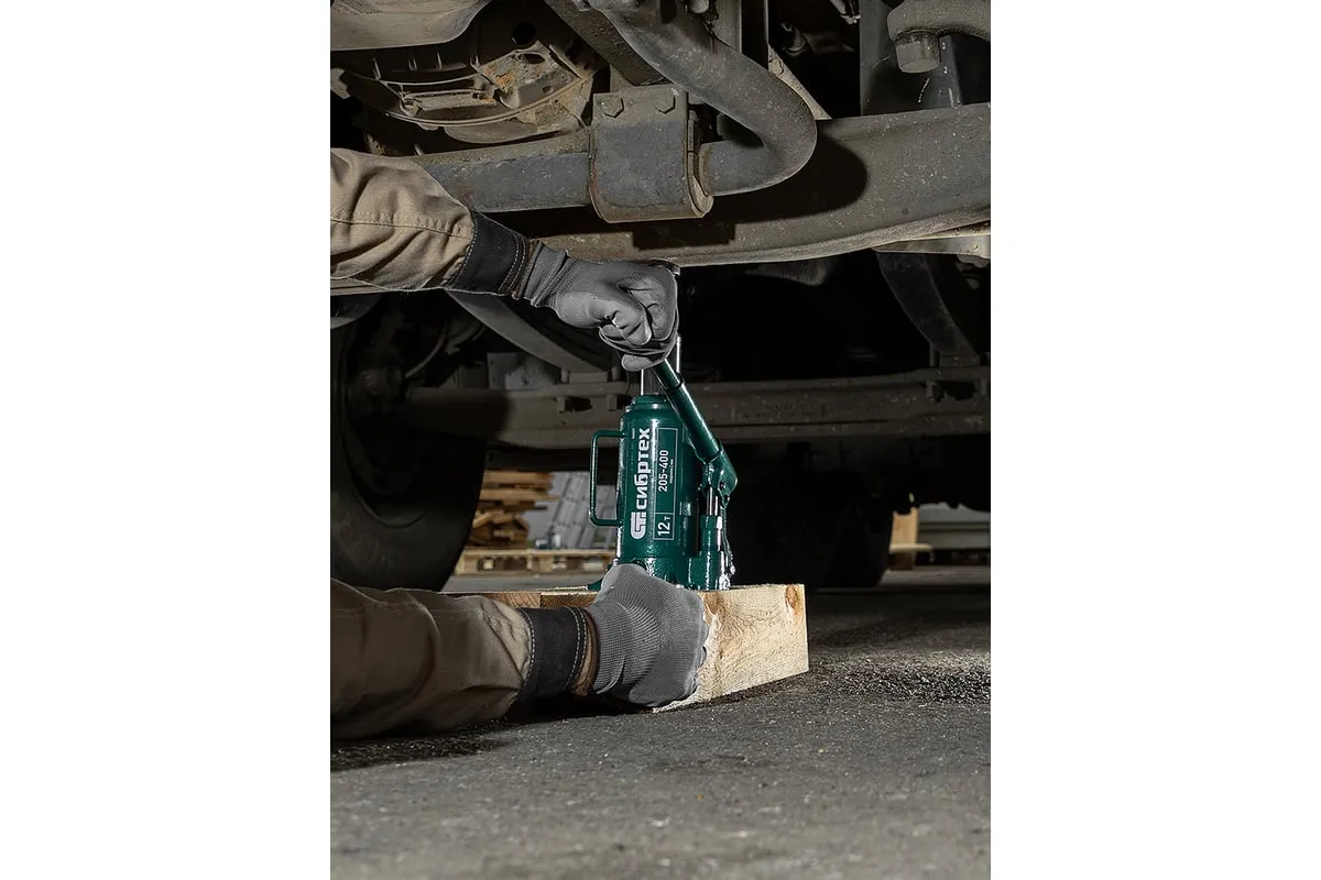 Домкрат гидравлический бутылочный Сибртех 50807 предназначен для подъема грузов массой до 12 т на высоту от 205 до 400 мм. Не требует больших усилий от пользователя и значительно облегчает рабочий процесс. Домкрат будет полезен при проведении техобслуживания машины в автосервисе или гараже.
