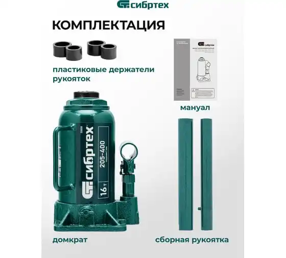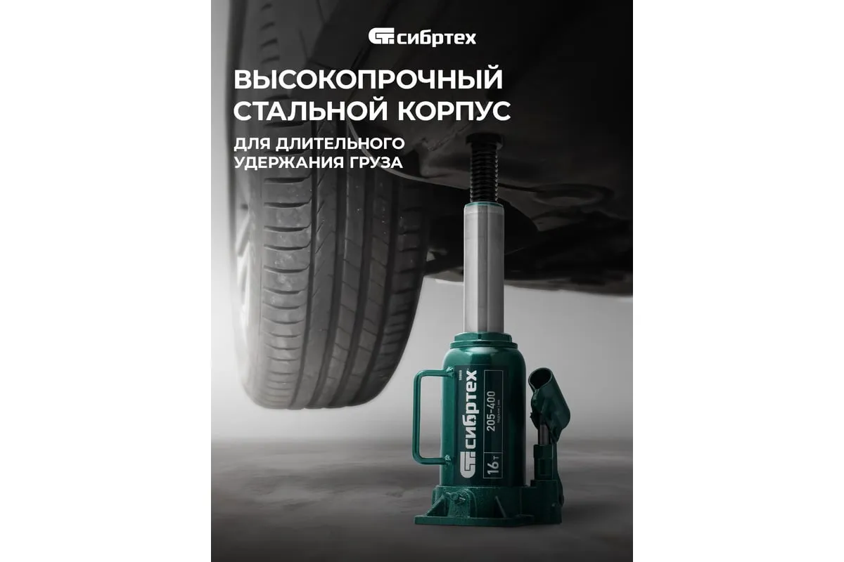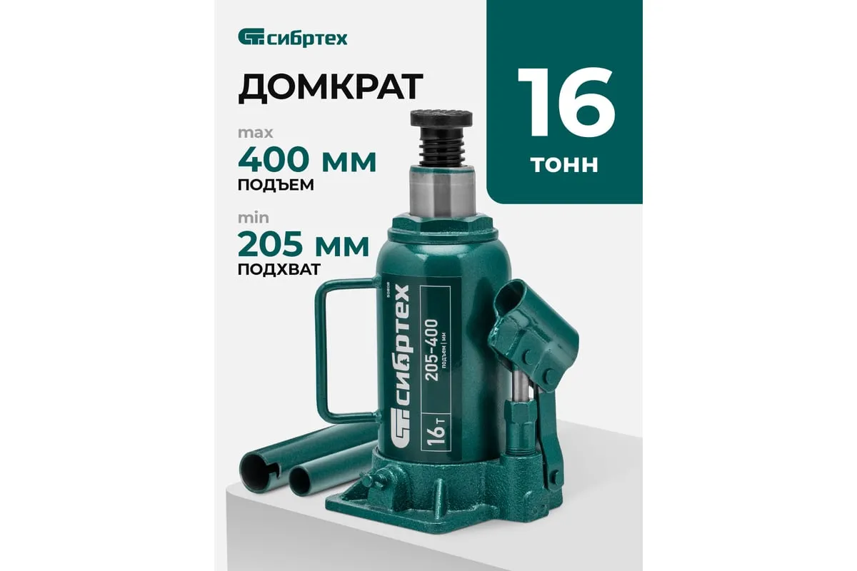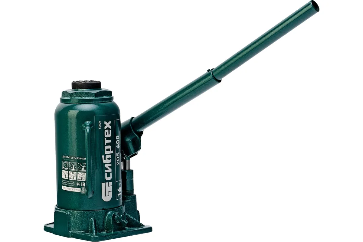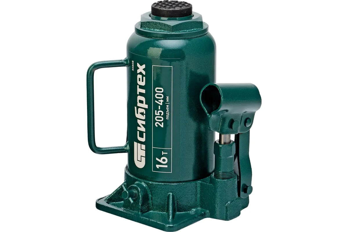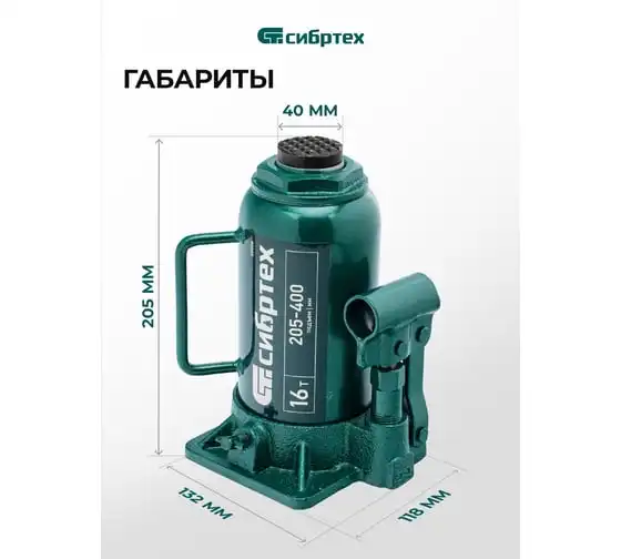 Домкрат гидравлический бутылочный Сибртех 50808 предназначен для подъема грузов массой до 16 т на высоту от 205 до 400 мм. Не требует больших усилий от пользователя и значительно облегчает рабочий процесс. Домкрат будет полезен при проведении техобслуживания машины в автосервисе или гараже.