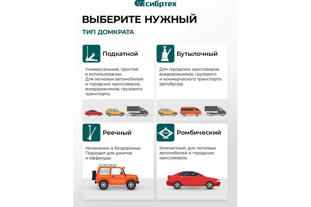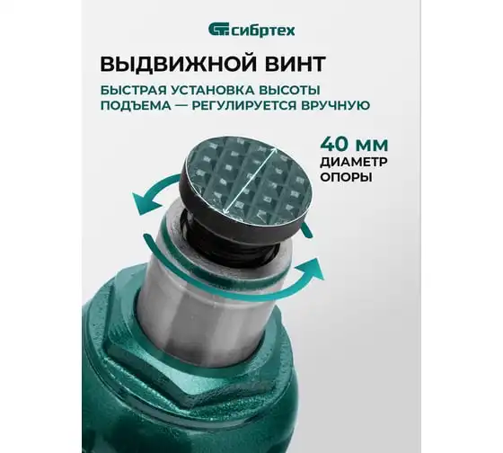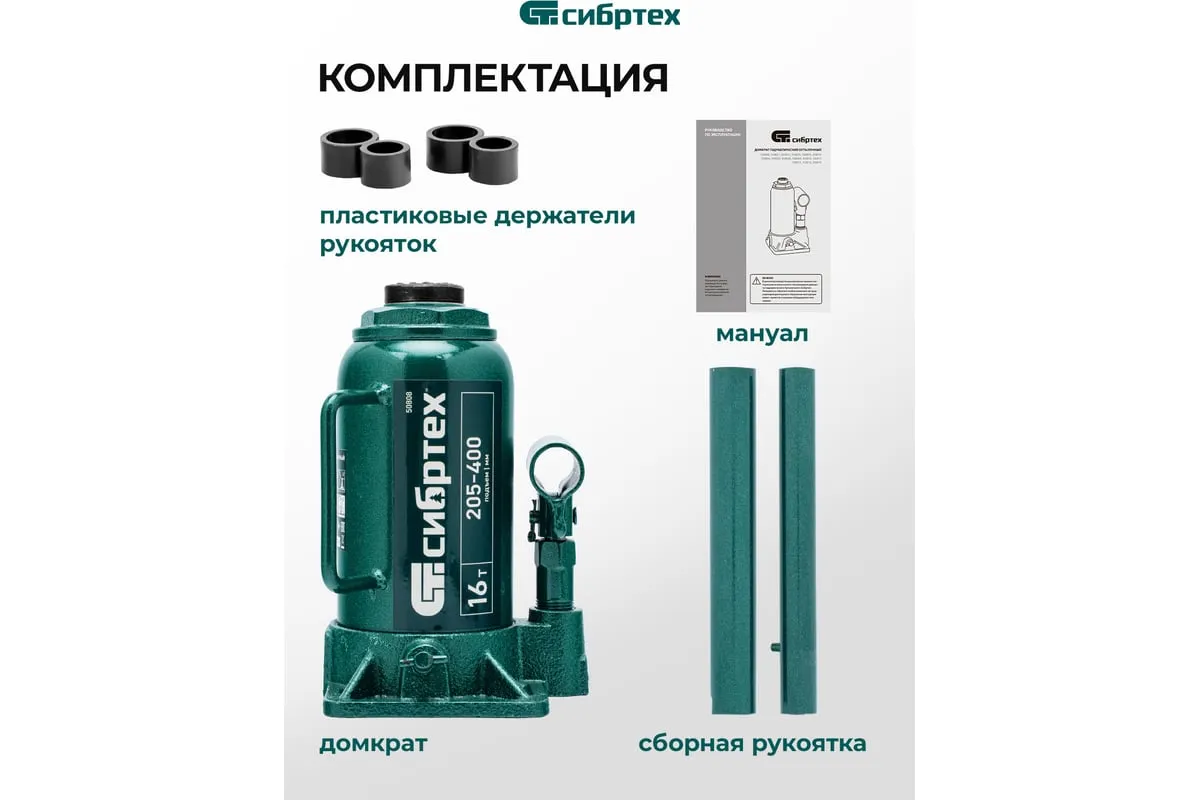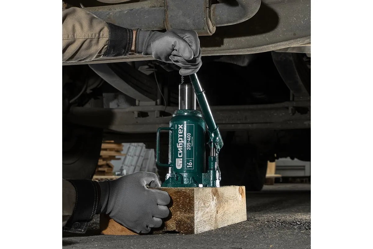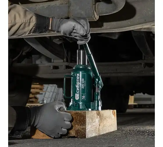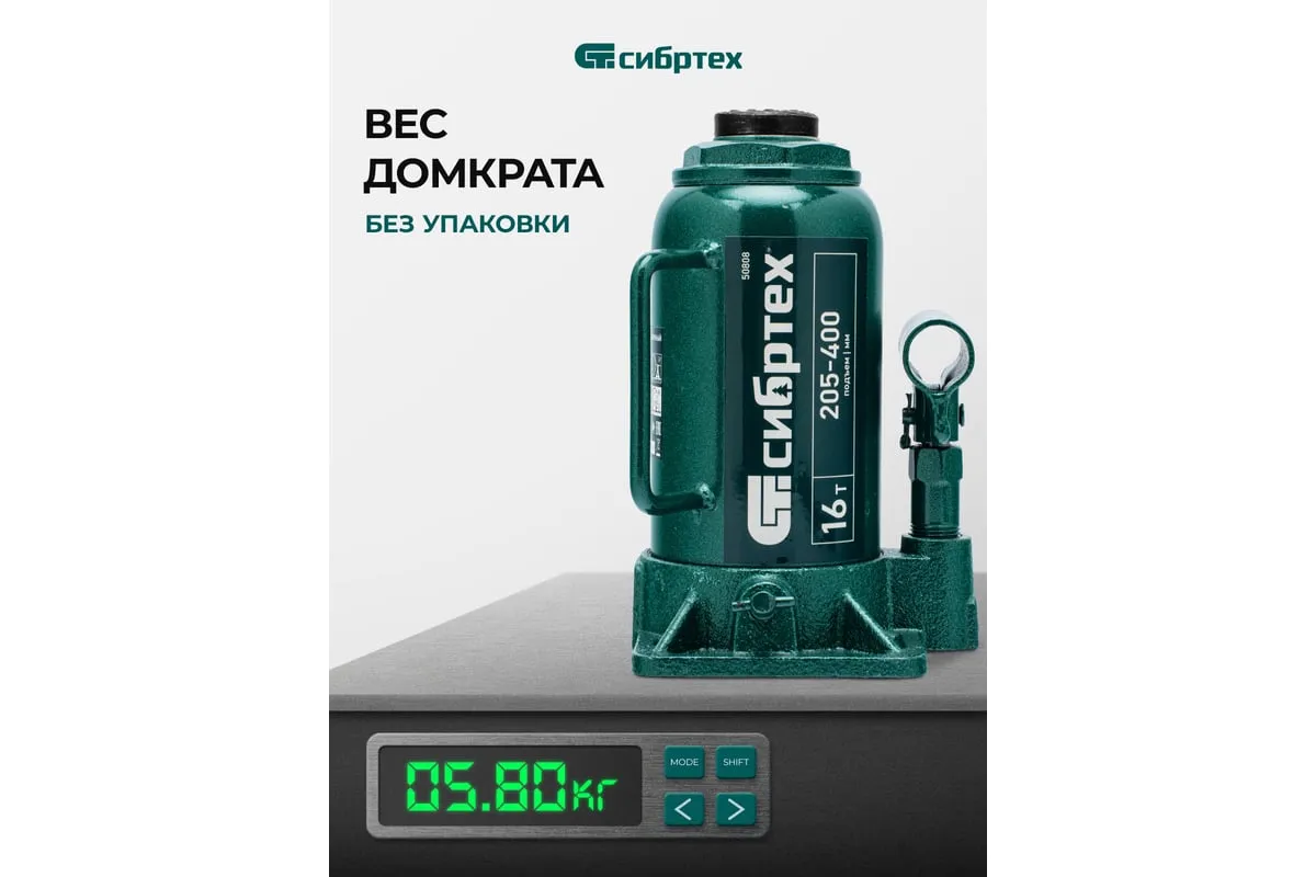 Домкрат гидравлический бутылочный Сибртех 50808 предназначен для подъема грузов массой до 16 т на высоту от 205 до 400 мм. Не требует больших усилий от пользователя и значительно облегчает рабочий процесс. Домкрат будет полезен при проведении техобслуживания машины в автосервисе или гараже.
