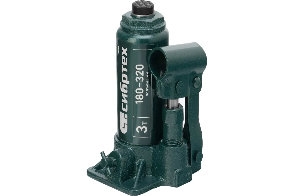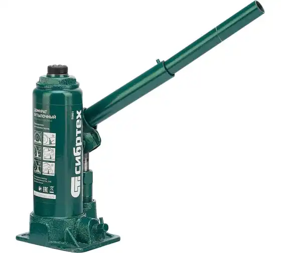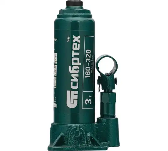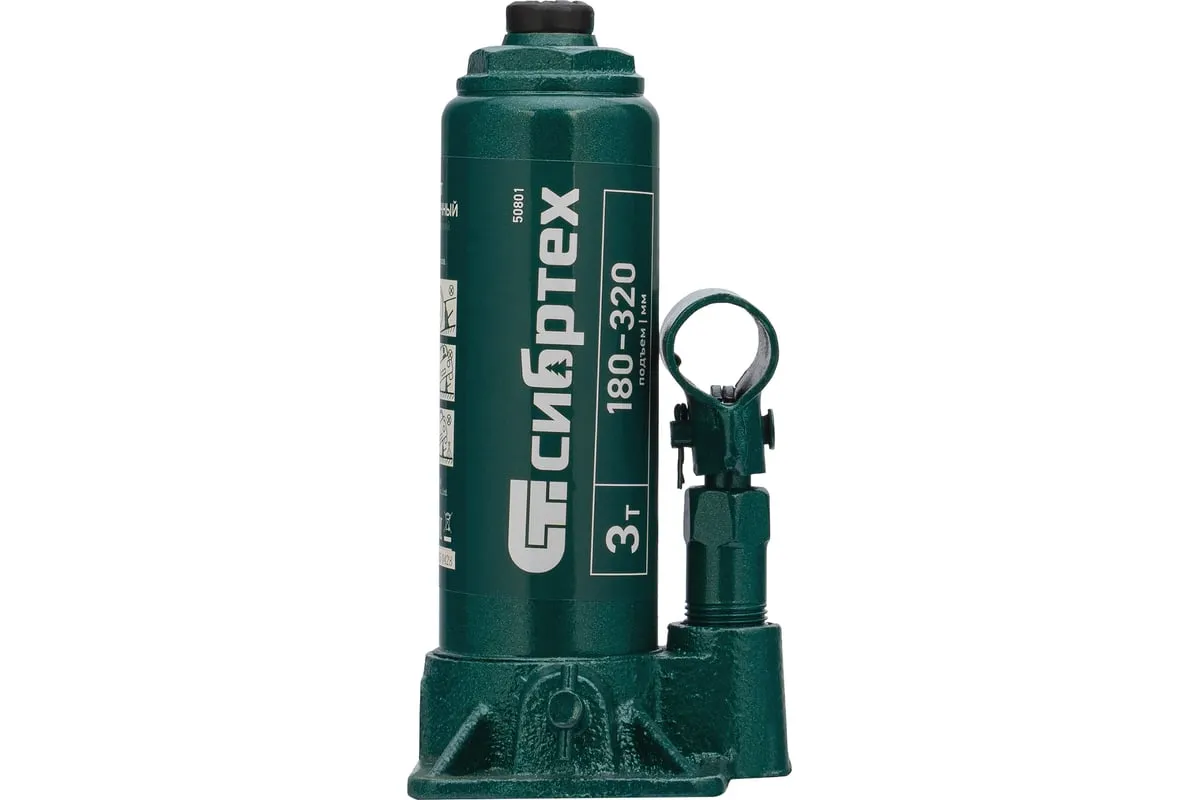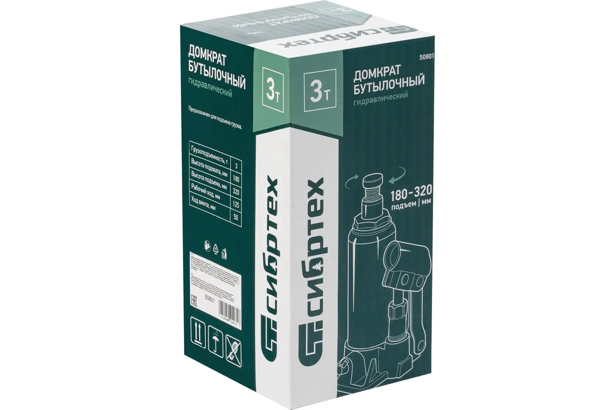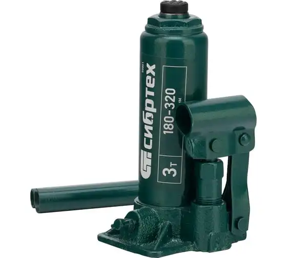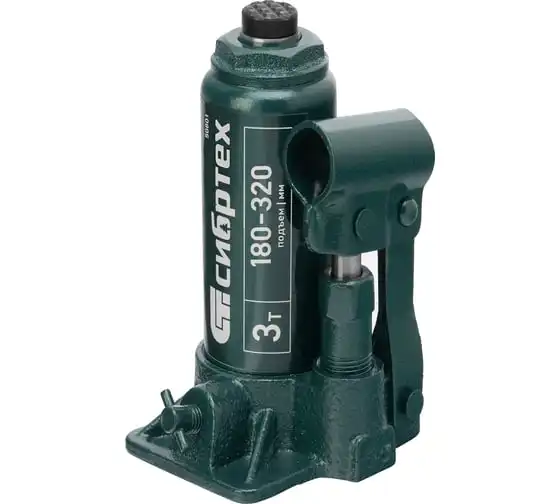 Домкрат гидравлический бутылочный Сибртех 50801 предназначен для подъема грузов массой до 3 т на высоту от 180 до 320 мм. Не требует больших усилий от пользователя и значительно облегчает рабочий процесс. Домкрат будет полезен при проведении техобслуживания машины в автосервисе или гараже.