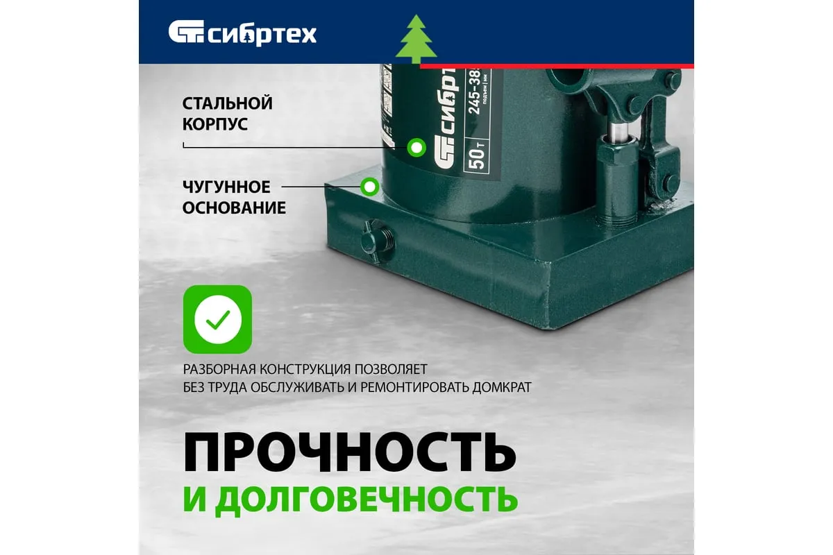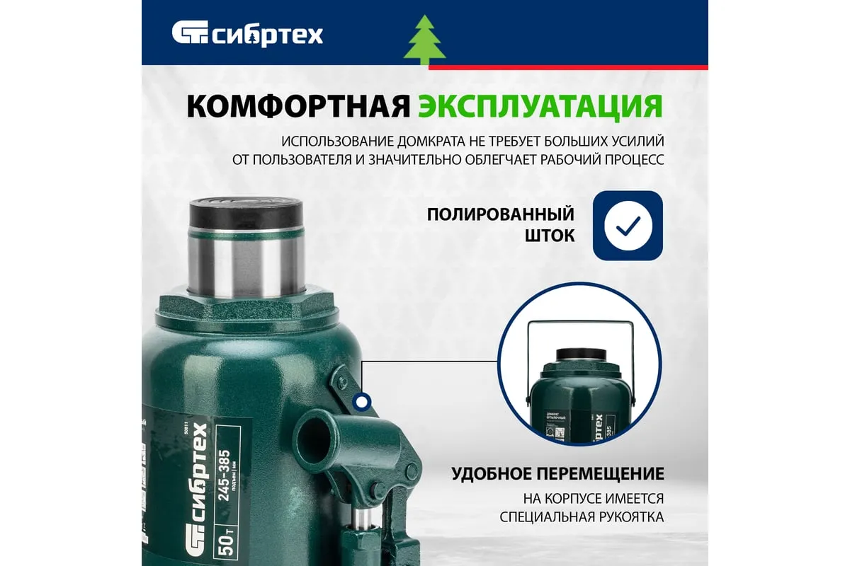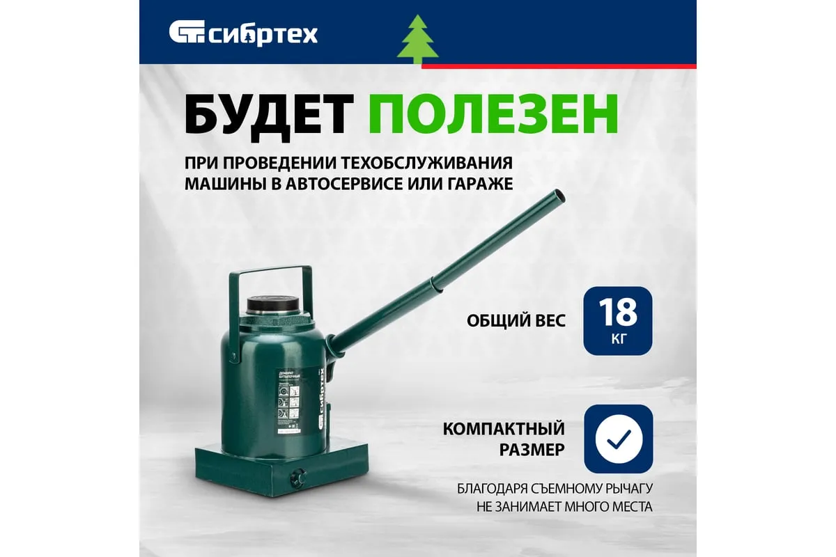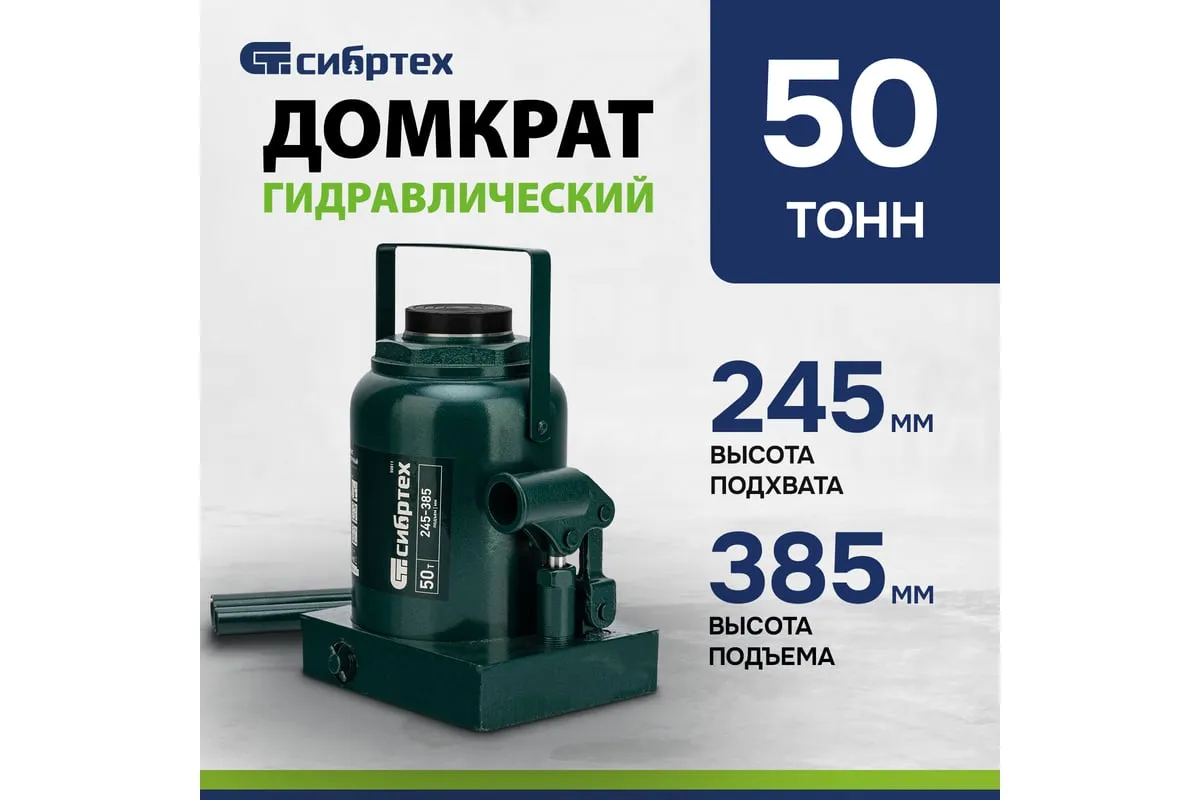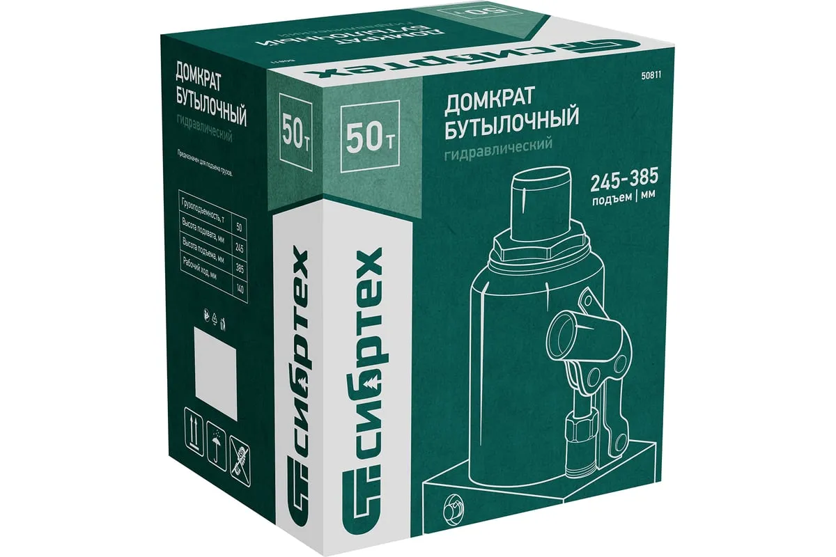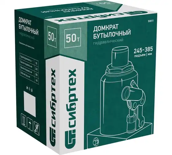 Домкрат гидравлический бутылочный Сибртех 50811 предназначен для подъема грузов массой до 50 т на высоту от 245 до 385 мм. Будет полезен при проведении техобслуживания машины в автосервисе или гараже.