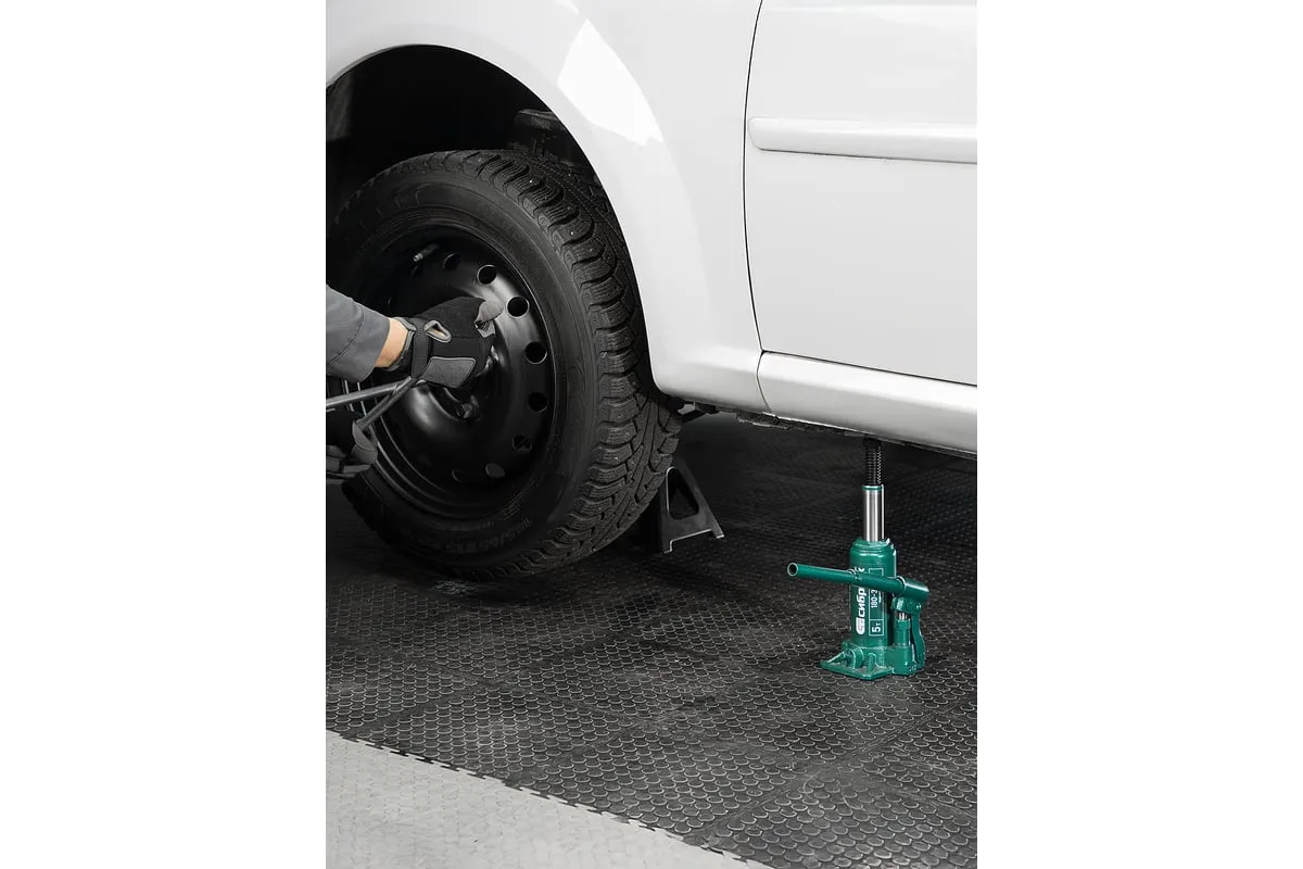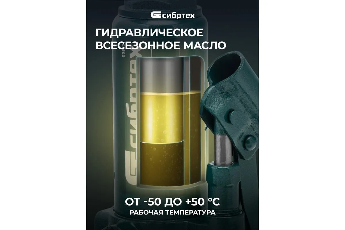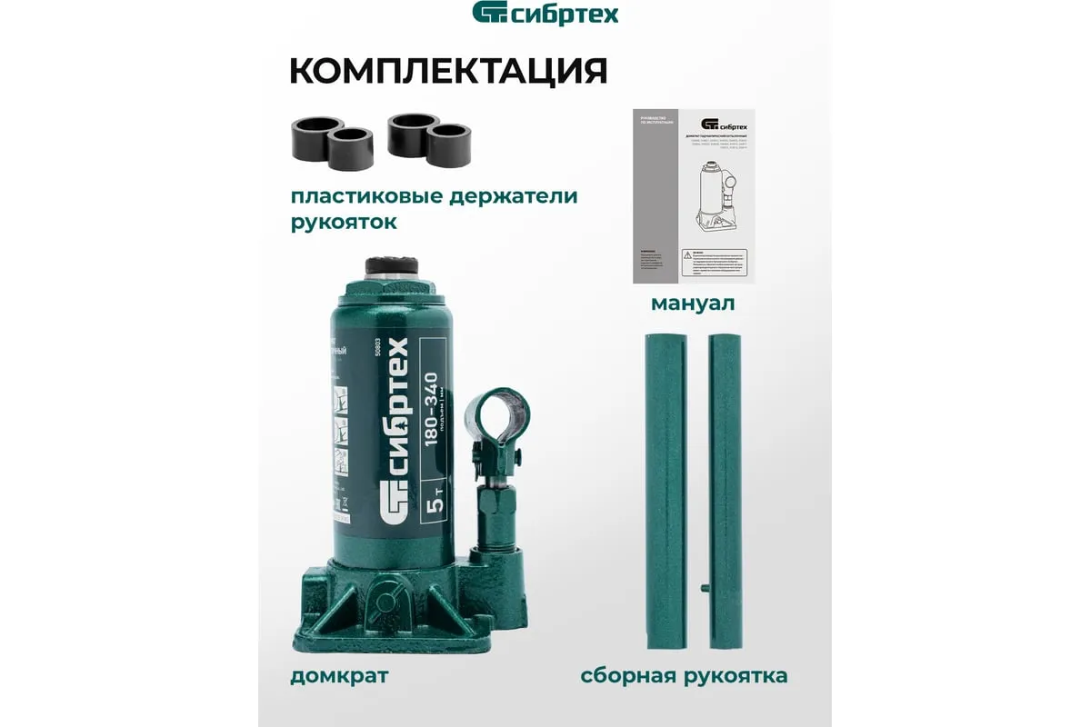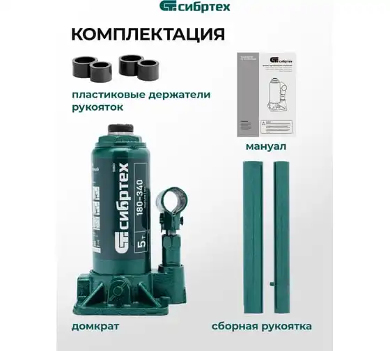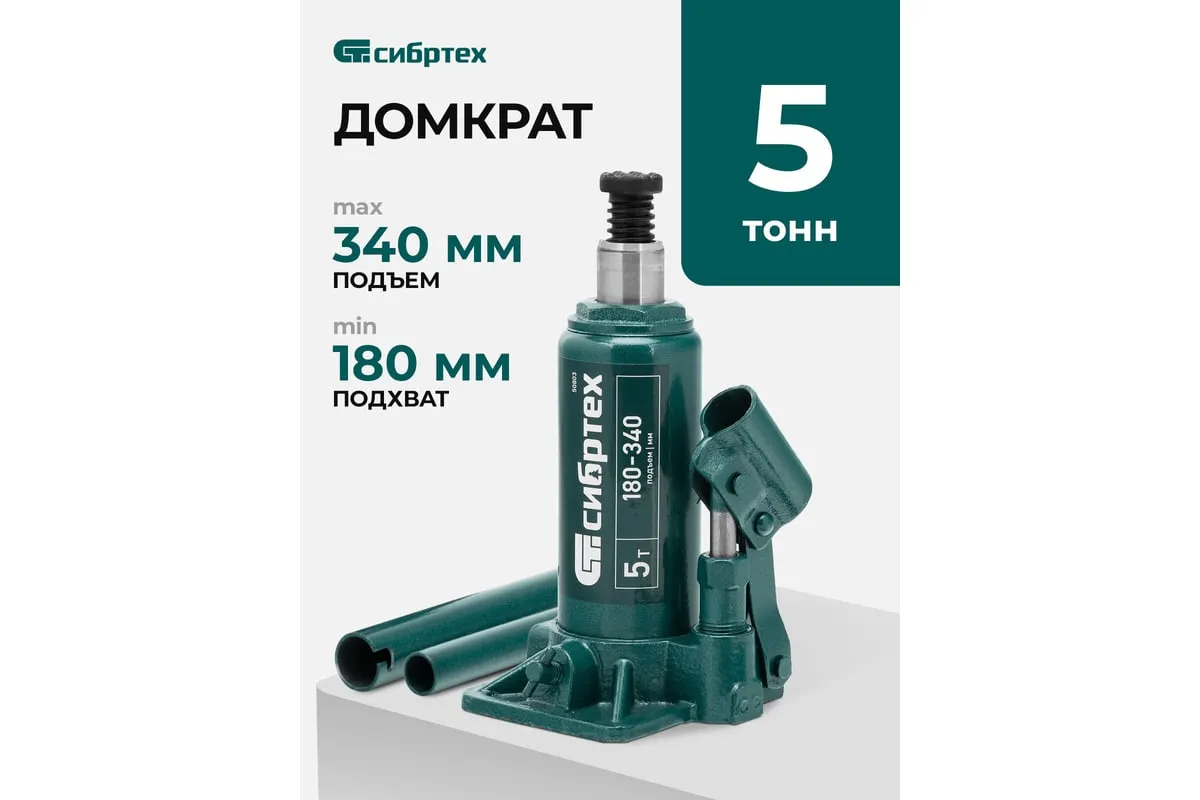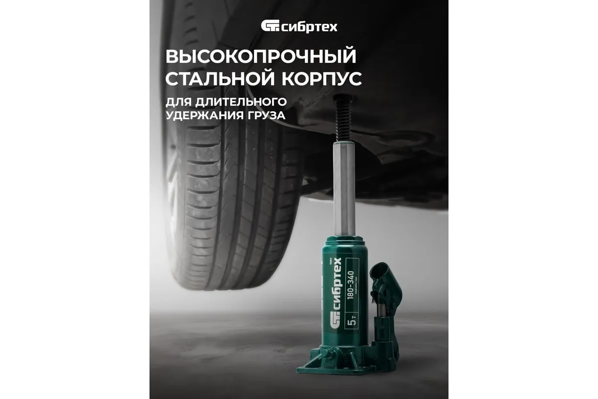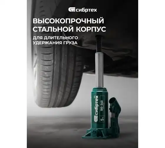Домкрат гидравлический бутылочный Сибртех 50803 предназначен для подъема грузов массой до 5 т на высоту от 180 до 340 мм. Не требует больших усилий от пользователя и значительно облегчает рабочий процесс. Домкрат будет полезен при проведении техобслуживания машины в автосервисе или гараже.