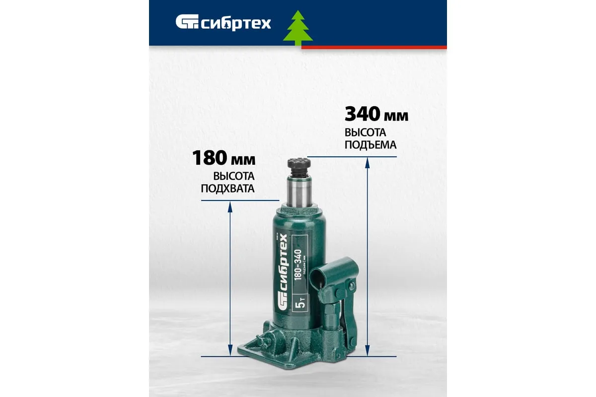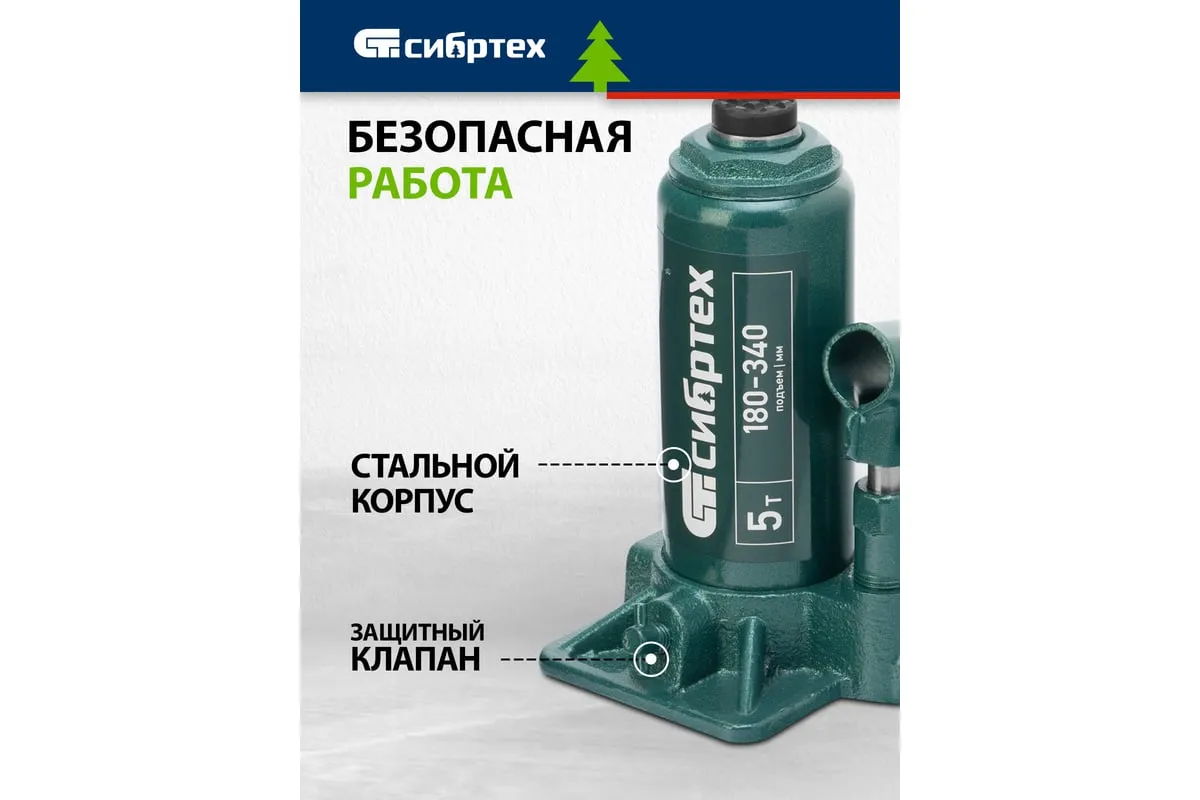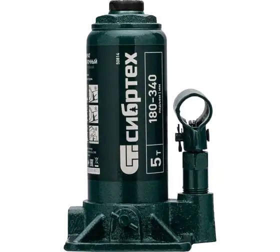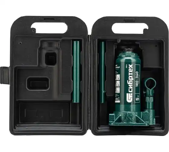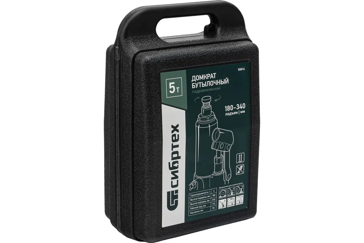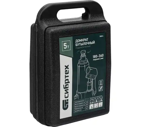 Домкрат гидравлический бутылочный Сибртех 50814, поставляющийся в пластиковом кейсе, предназначен для подъема грузов массой до 5 т на высоту от 180 до 340 мм. Не требует больших усилий от пользователя и значительно облегчает рабочий процесс. Домкрат будет полезен при проведении техобслуживания машины в автосервисе или гараже.