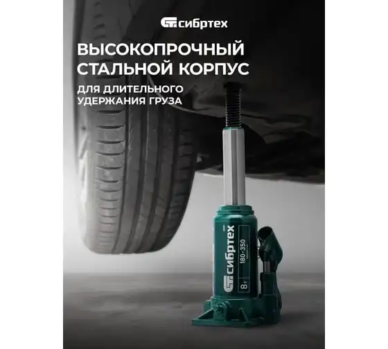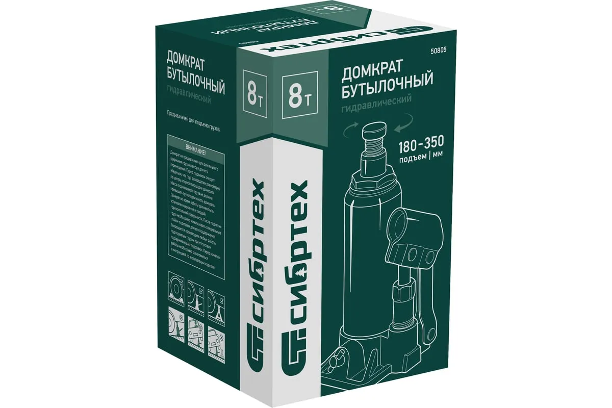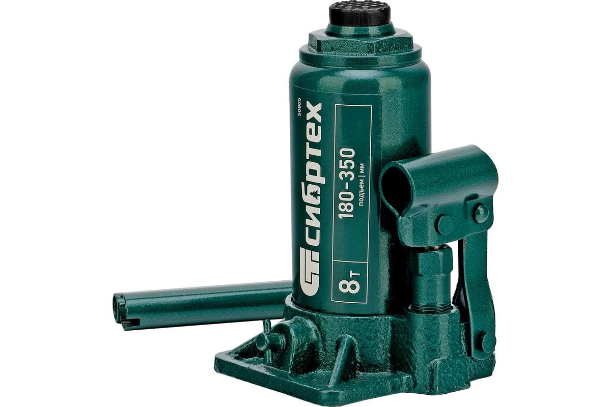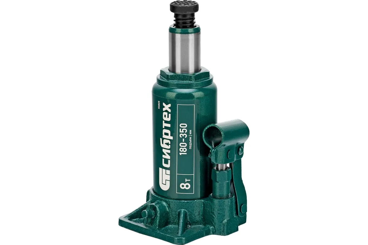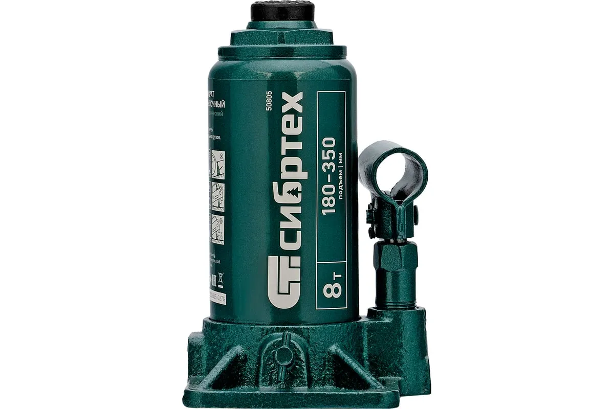 Домкрат гидравлический бутылочный Сибртех 50805 предназначен для подъема грузов массой до 8 т на высоту от 180 до 350 мм. Не требует больших усилий от пользователя и значительно облегчает рабочий процесс. Домкрат будет полезен при проведении техобслуживания машины в автосервисе или гараже.