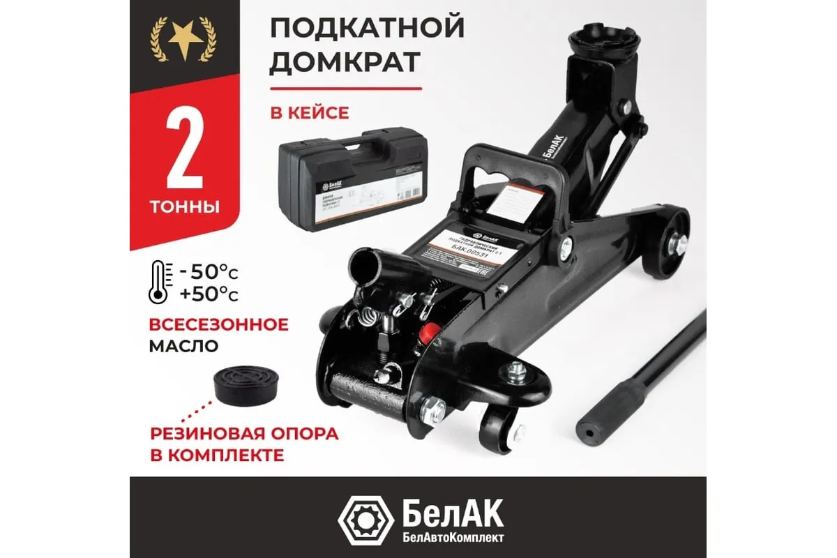 Домкрат подкатной 2 тонны в кейсе "БелАК" идеально подойдет для ремонтно-монтажных работ в гараже, СТО, автопарках.