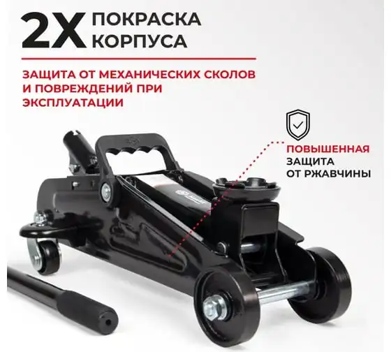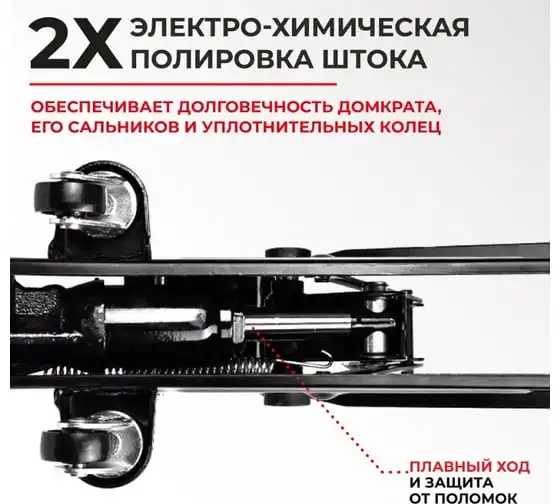 Деликатная двойная покраска корпуса домкрата надежно защищает его от механических повреждений, и значительно продлевает срок службы. Специальное гидравлическое масло работает в широком диапазоне температур (+/- 50 °C).