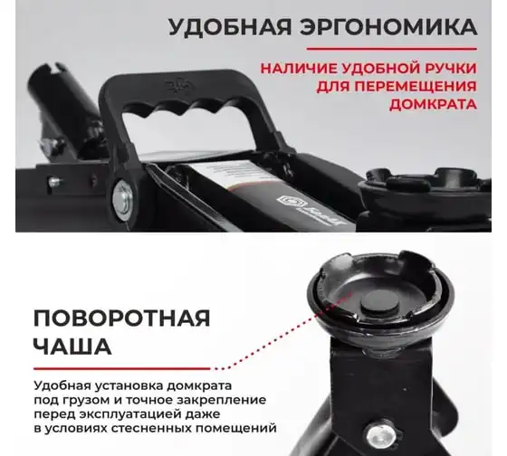 Домкрат подкатной 2 тонны в коробке БелАК БАК.00053 оснащается рукояткой длиной 330 мм, что позволяет при небольшом ходе поршня обеспечивать малое усилие для подъема руза. Благодаря низкому профилю высота подхвата снижается до 135 мм при возможности поднять груз на высоту до 320 мм. Использование современных инженерных технологий позволяет повысить время удержания груза на максимально допустимой высоте.