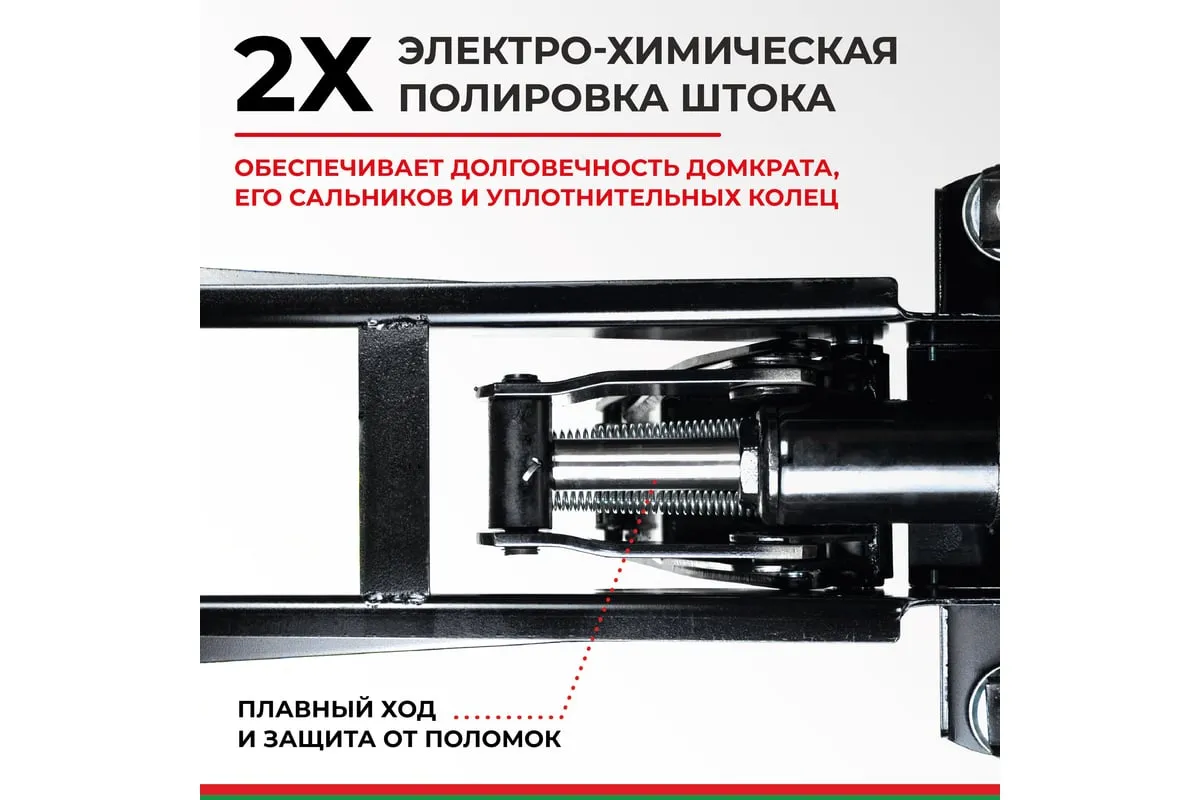 Карданный привод клапана и двойной насос существенно упрощают работу. Деликатная двойная покраска корпуса домкрата надежно защищает его от механических повреждений, и значительно продлевает срок службы. Специальное гидравлическое масло работает в широком диапазоне температур (+/- 50 °C).