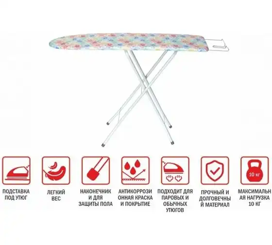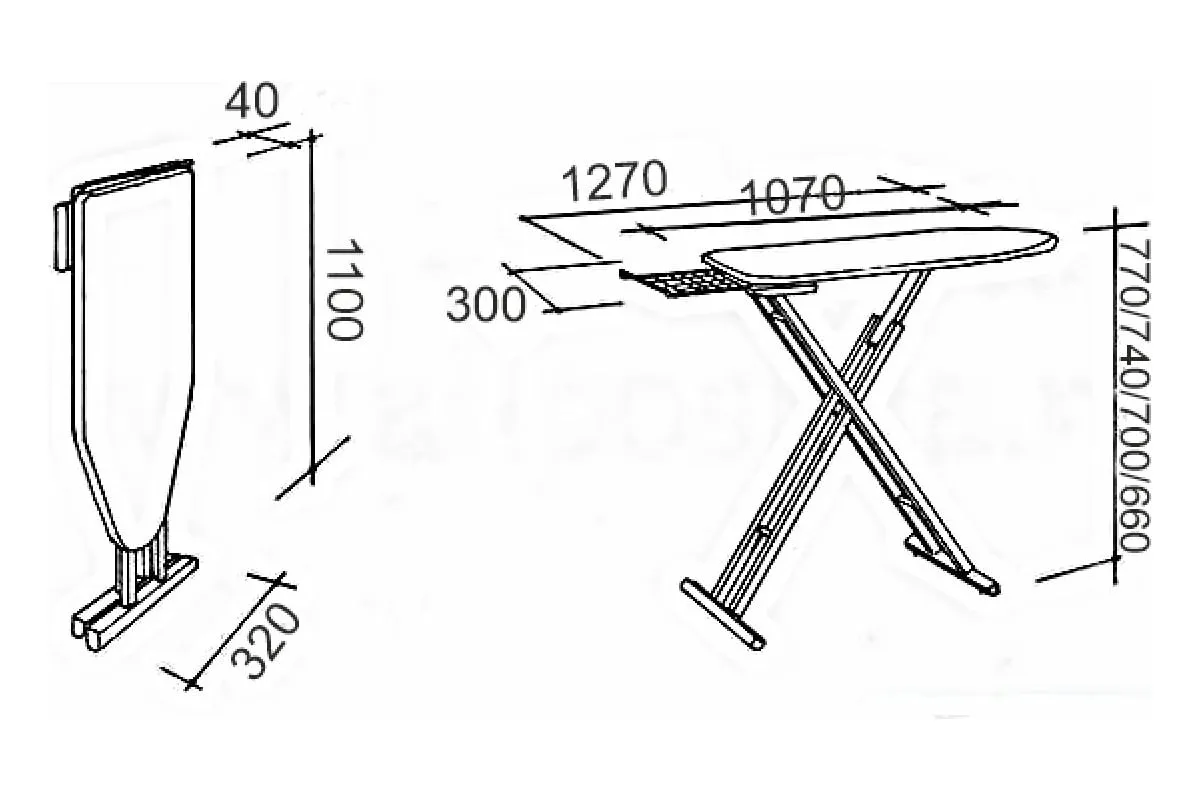 Доска гладильная Basic 4 1070x300 мм PERFECTO LINEA 42-107304 подходит для паровых и обычных утюгов. 4 уровня регулировки высоты: 66 см, 70 см, 74 см, 77 см. Ножки оснащены наконечниками для защиты пола. Конструкция доски выполнена из прочного и долговечного материала. Легкий вес. Материал каркаса: сталь. Максимальная нагрузка: 10 кг. Диаметр трубы ножек: 19 мм.