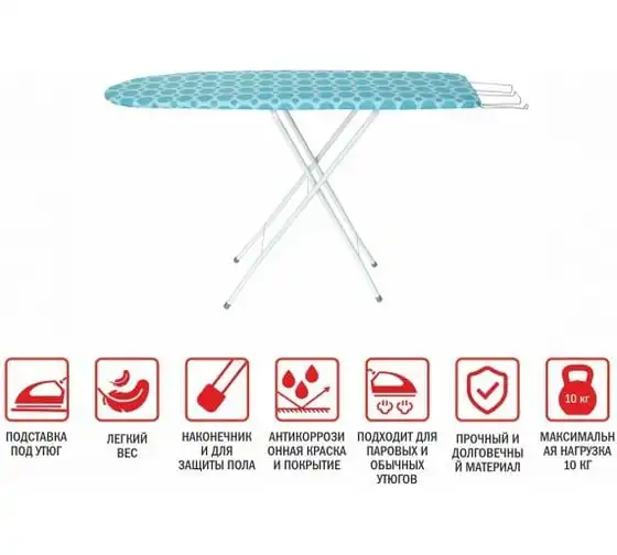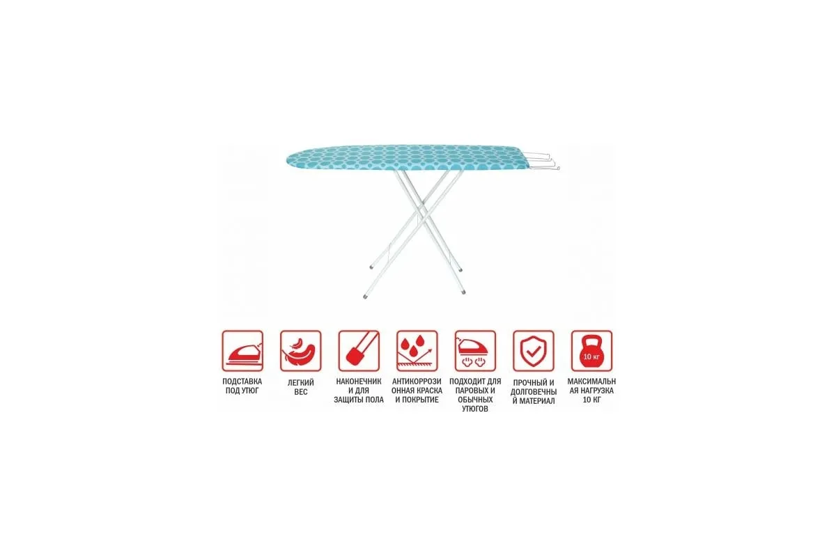 Доска гладильная Standard 1 1220x300 мм PERFECTO LINEA 42-142301 подходит для паровых и обычных утюгов. 4 уровня регулировки высоты: 69 см, 73 см, 77 см, 80 см. Ножки оснащены наконечниками для защиты пола. Конструкция доски выполнена из прочного и долговечного материала. Легкий вес. Материал каркаса: сталь. Максимальная нагрузка: 10 кг. Диаметр трубы ножек: 19 мм.