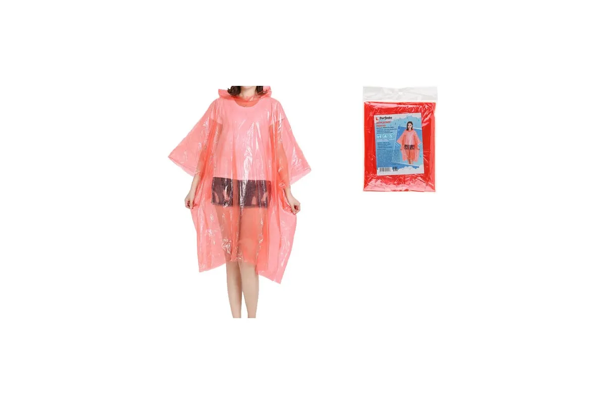 Дождевик-пончо PERFECTO LINEA красный 28-102001 – отличное решение для велопрогулок, рыбалки, прогулок с детской коляской. Подойдет для мужчин и женщин. Изготовлен из водоотталкивающего материала – полиэстера. Компактный, легко складывается. Удобно взять с собой и надеть в нужный момент.
